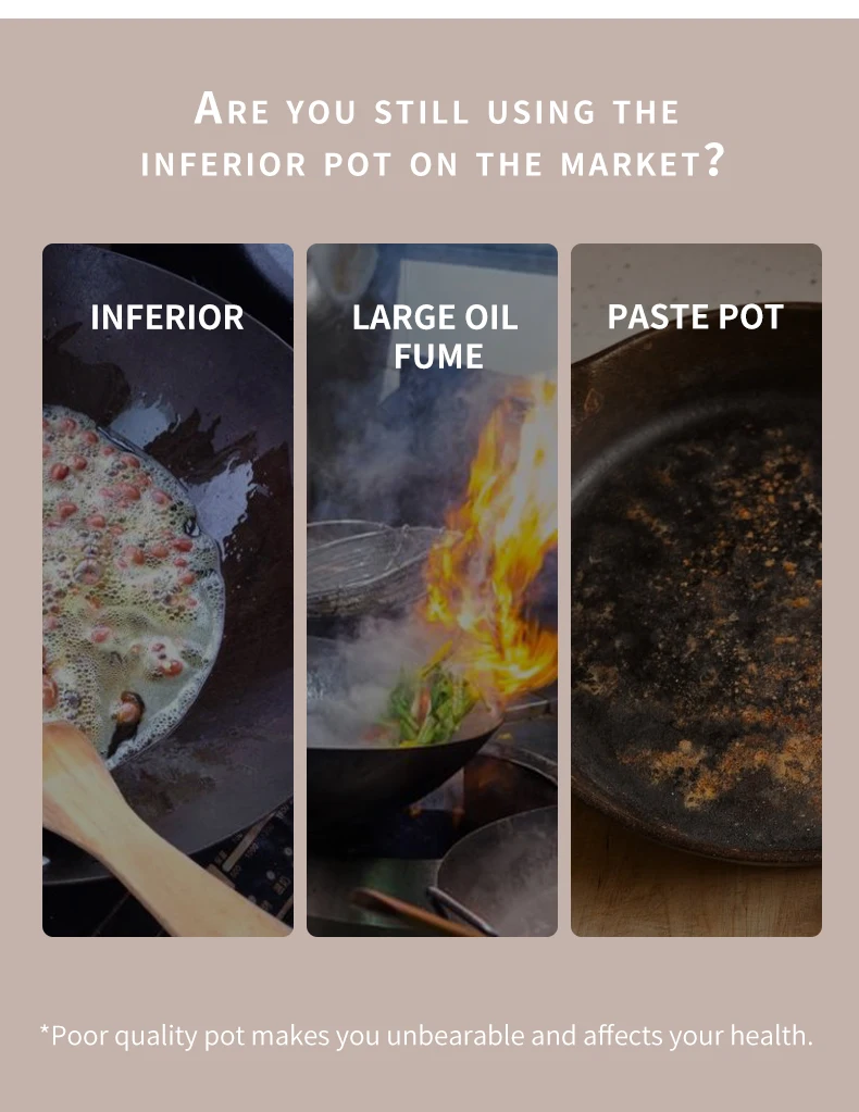 2.The pan features The thick pot body design, which is featrued by The large-capacity, thus making cooking easier.