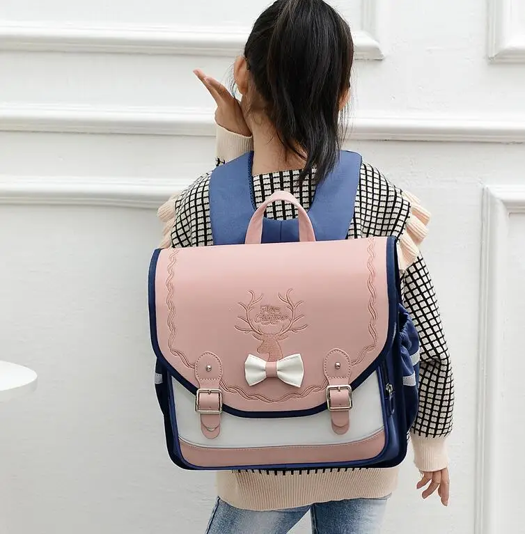 School Bags Girls Orthopedic Backpack Cute Waterproof PU SchoolBag for Teenage Flip Book Bag Student Grade 1-3 Mochilas Infantil