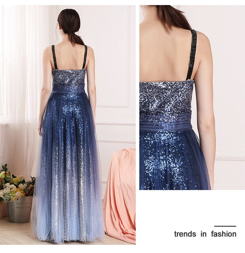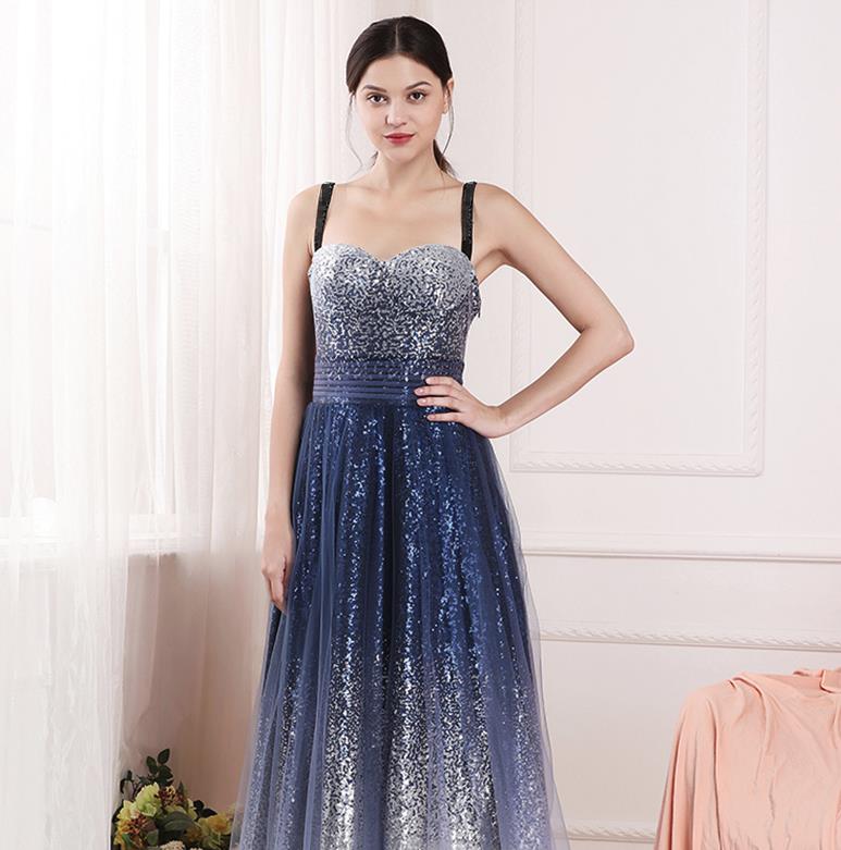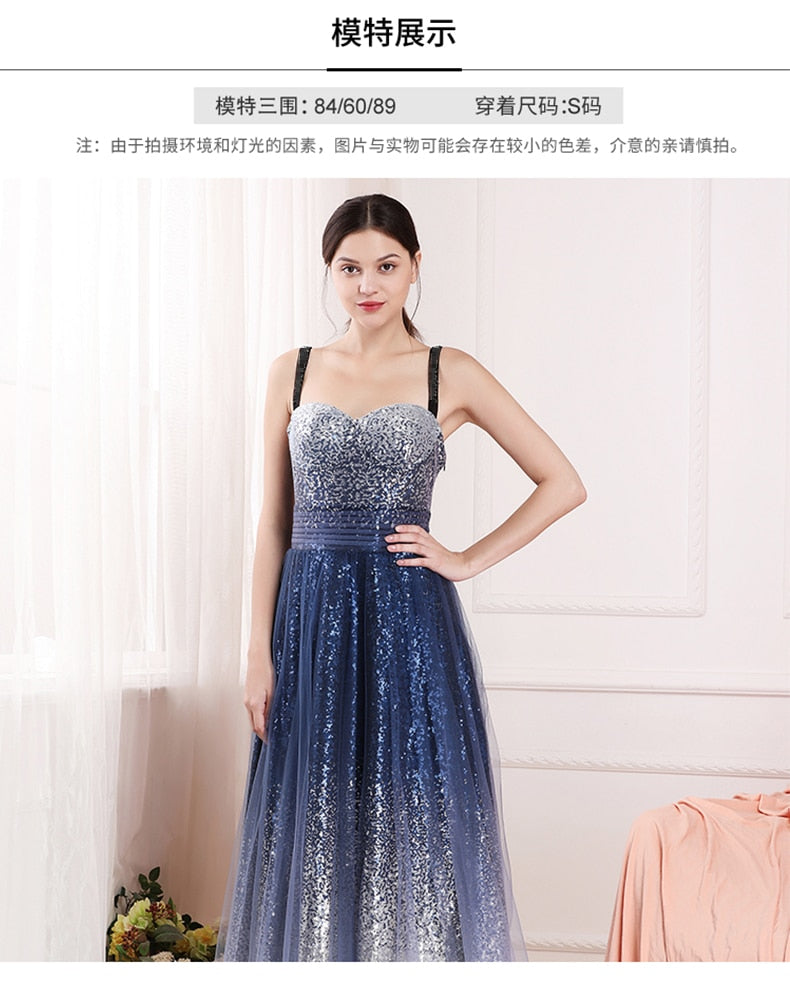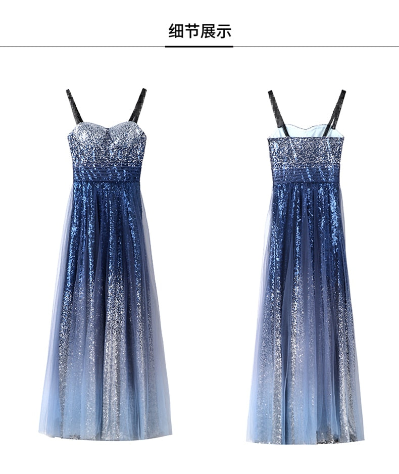 sexy blue gradient socialite birthday party annual toast stars evening dress