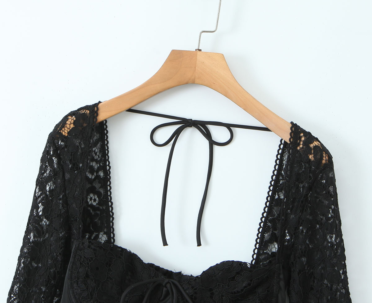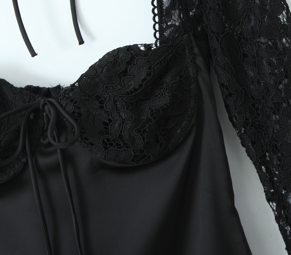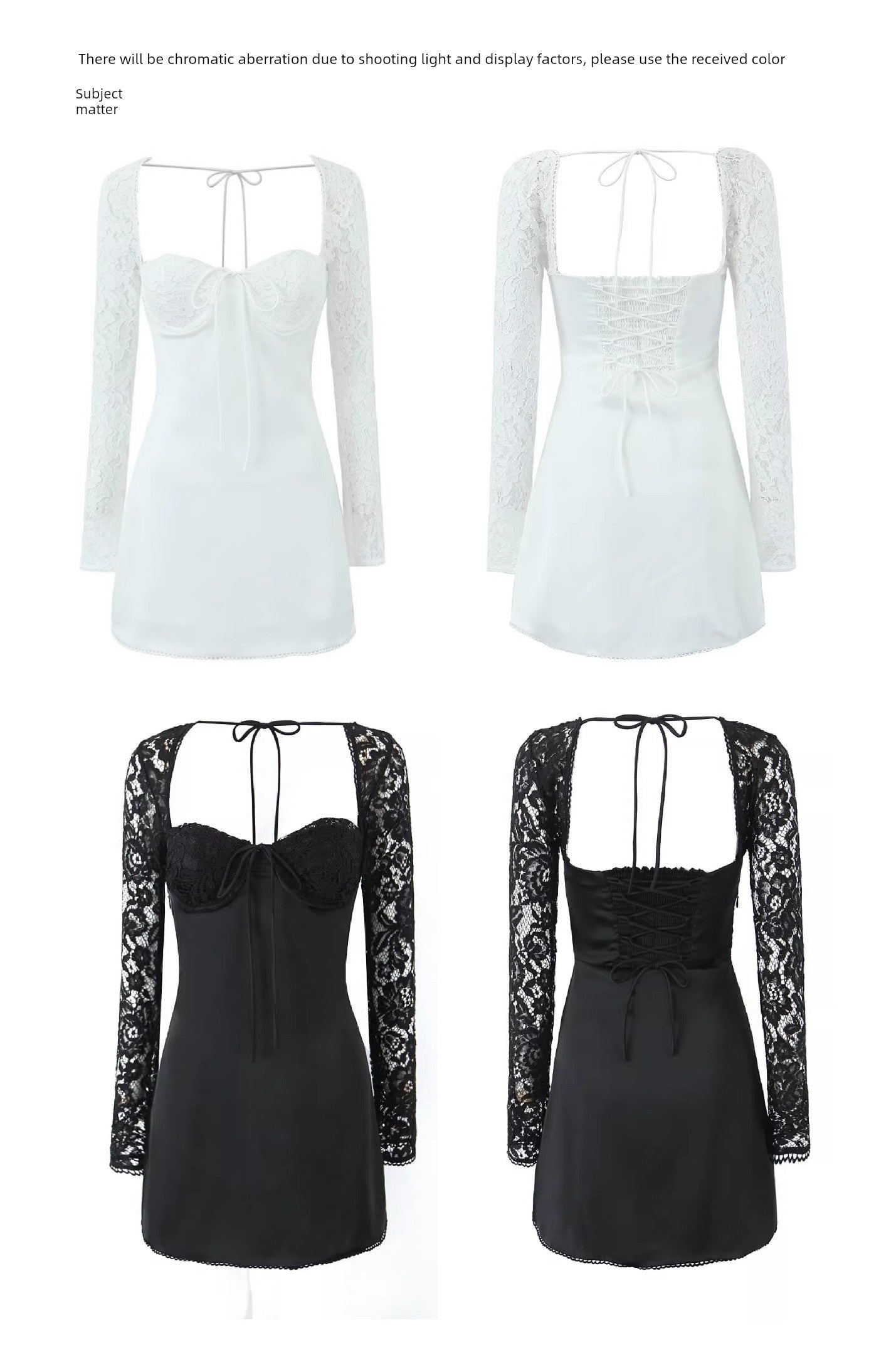 Sexy Lace Sleeve Slim Looking Dress Backless Lace up