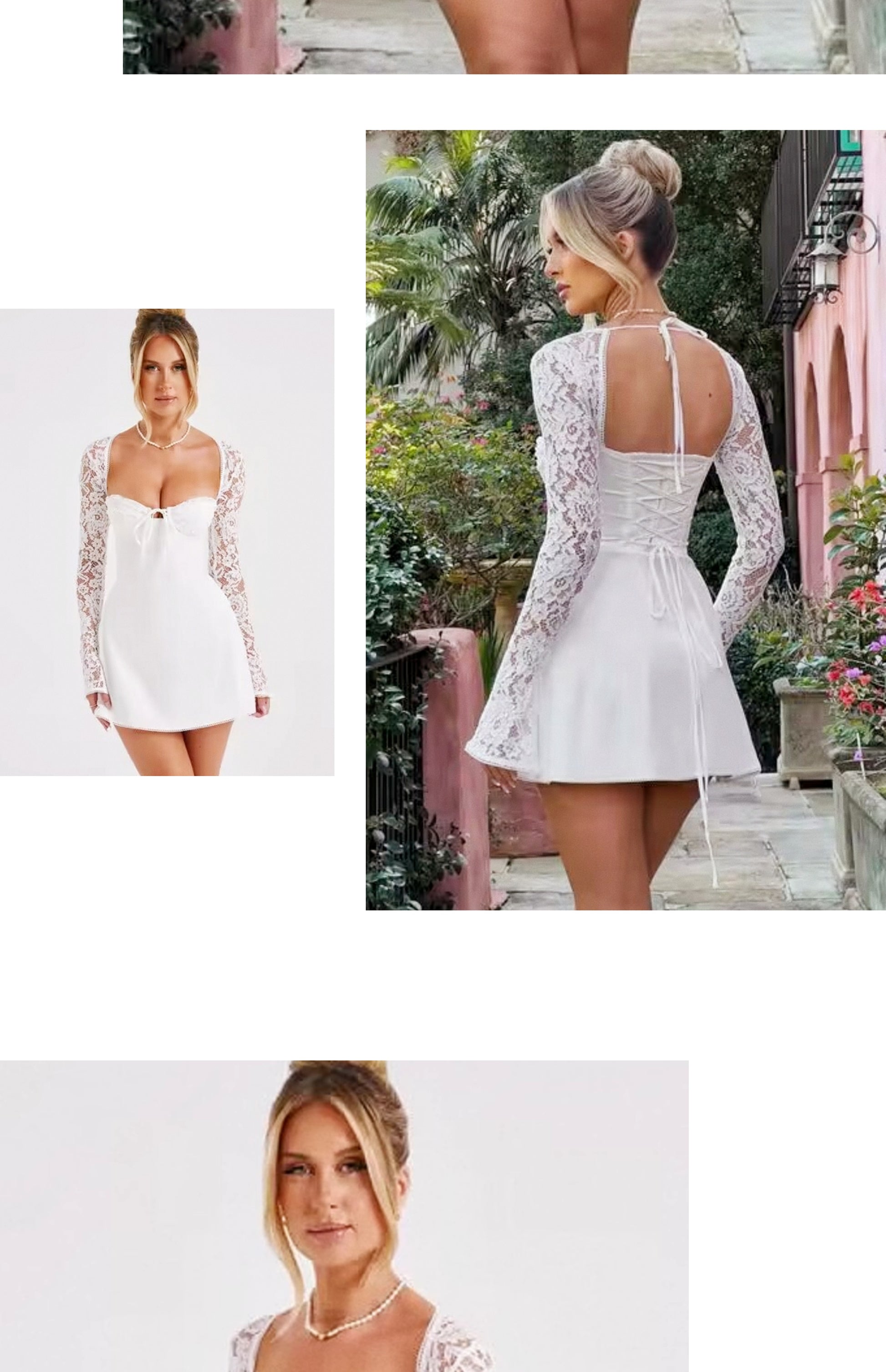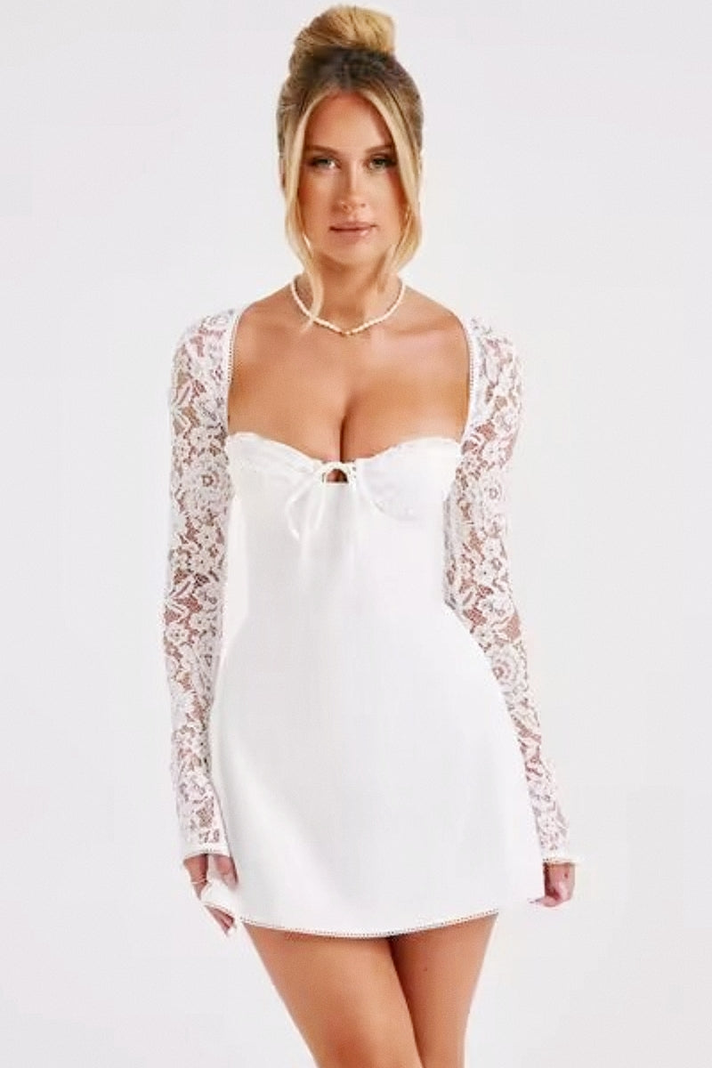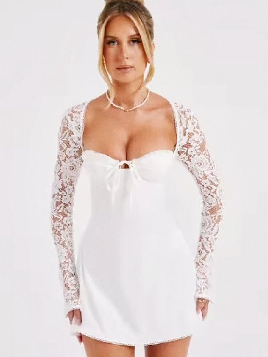 Sexy Lace Sleeve Slim Looking Dress Backless Lace up