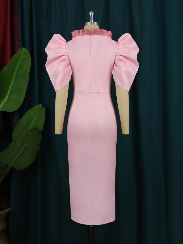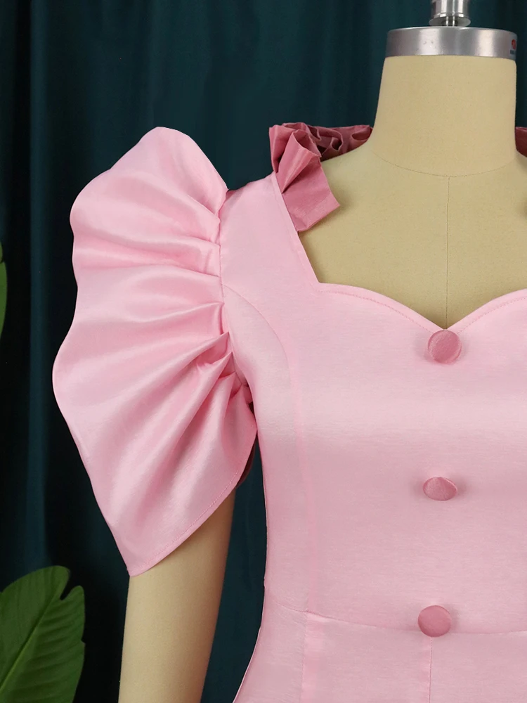 Sexy Pink Party Dresses for Women High Slit Short Puff Sleeve Button Robes Celebrate Homecoming Event Outfits Summer Vestidos