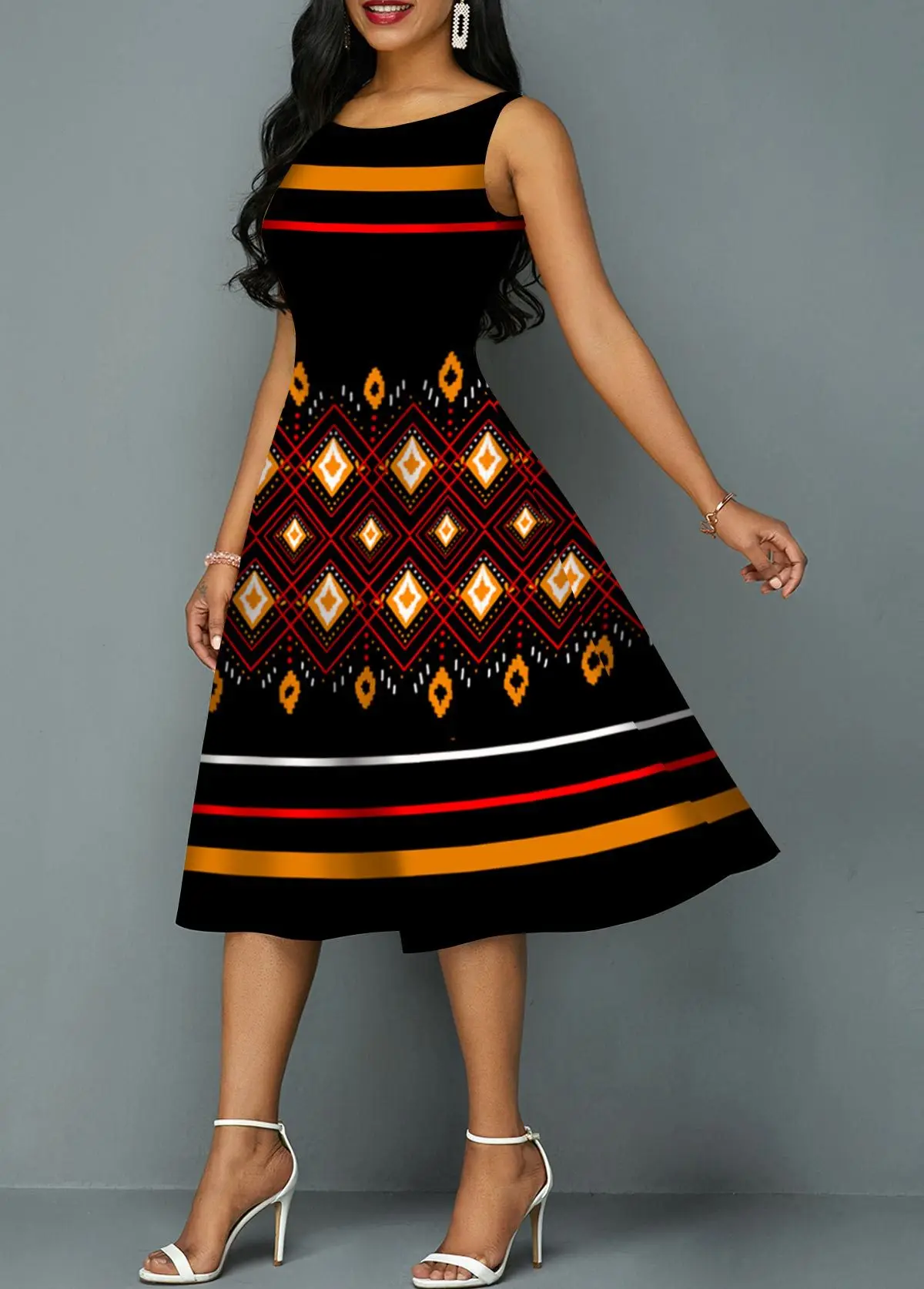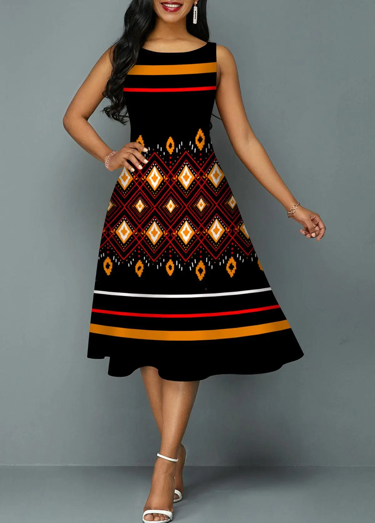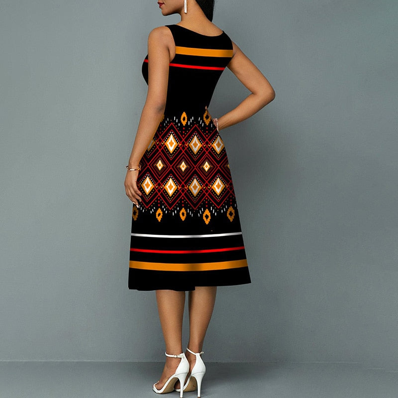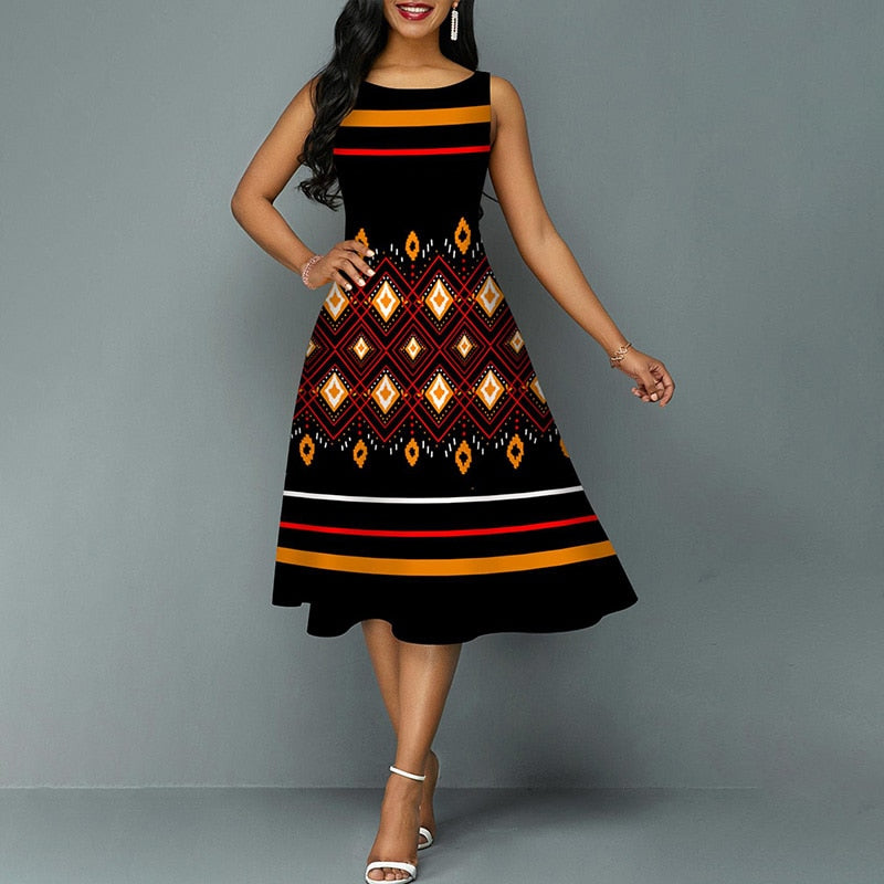 Summer Striped Patchwork Vintage Bodycon Dresses For Women 2022 High Waist Casual Robe Vacation Midi Sleeveless Dress Female
