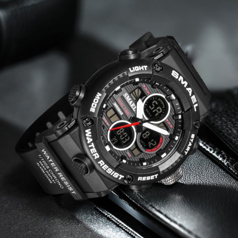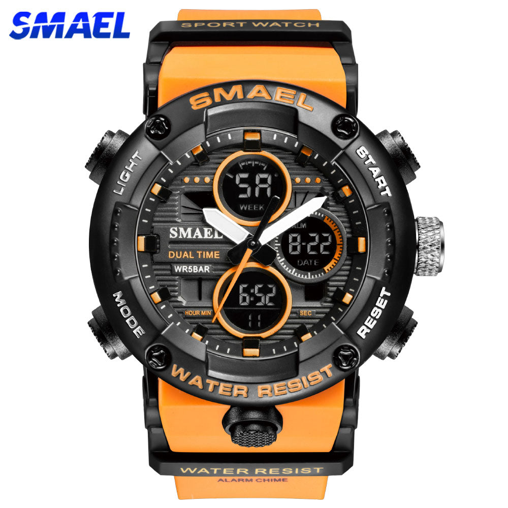 SMAEL Mens Watches Military 50m Waterproof Sport Stopwatch Alarm LED Digital Watch Men Big Dial Clock For Male Relogio Masculino