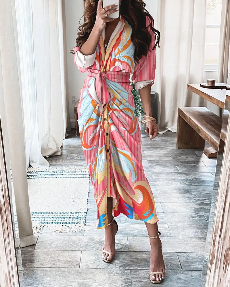 Striped Leopard Print Button Women's Dress Spring 2022 Elegantes Ankle Bandage Dress Half Sleeve Vintage Dress Shirt Beach Robe