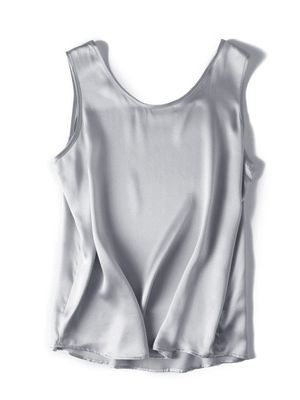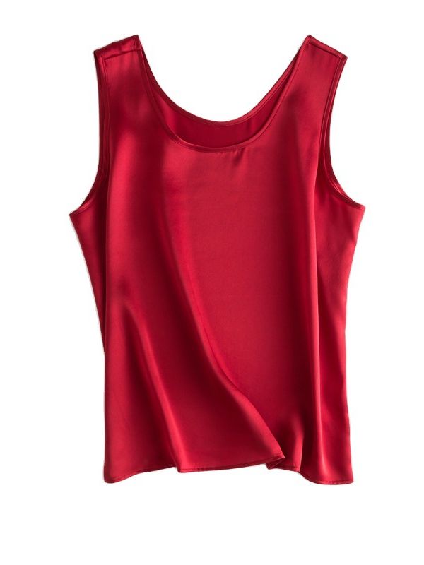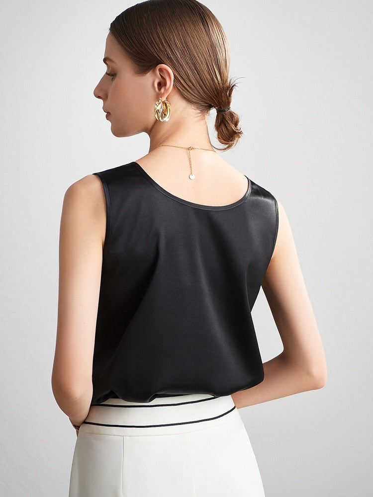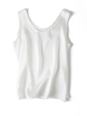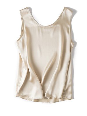 SuyaDream Women Basic Cozy Tanks 100%Real Silk O neck Sleeveless Chic T Shirt 2020 Solid Summer Vests White Pink Beige