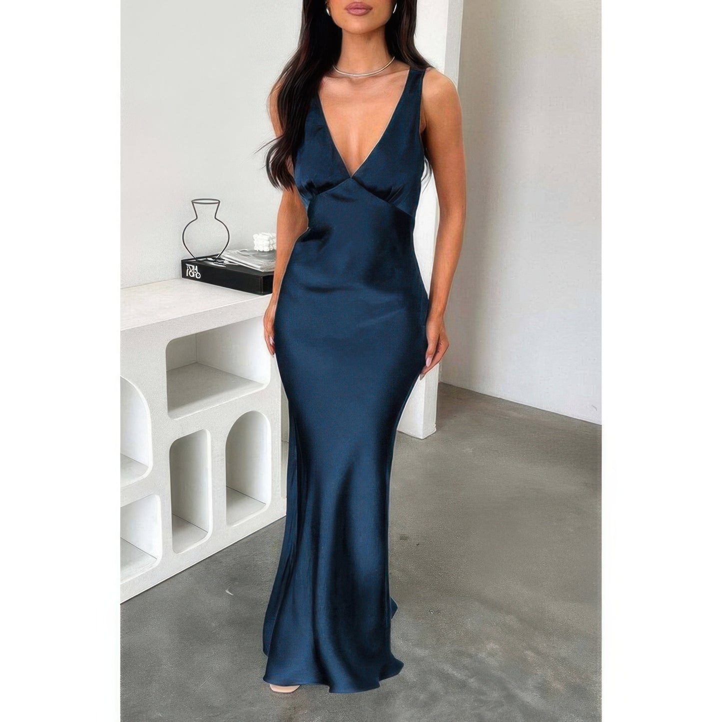 Elegant with a hint of allure, this Solid Deep V-Neck Low Back High Waist Full Dress is designed to turn heads while offering all-day comfort. The deep V-neckline and dramatic low back bring a bold, sophisticated edge, balanced by a high waist that accentuates your natural shape. Crafted from a soft, stretchy polyester-elastane blend, the full-length silhouette flows effortlessly for a flattering drape. Perfect for casual events, vacations, or outdoor evenings, this dress delivers timeless style with contemporary flair.