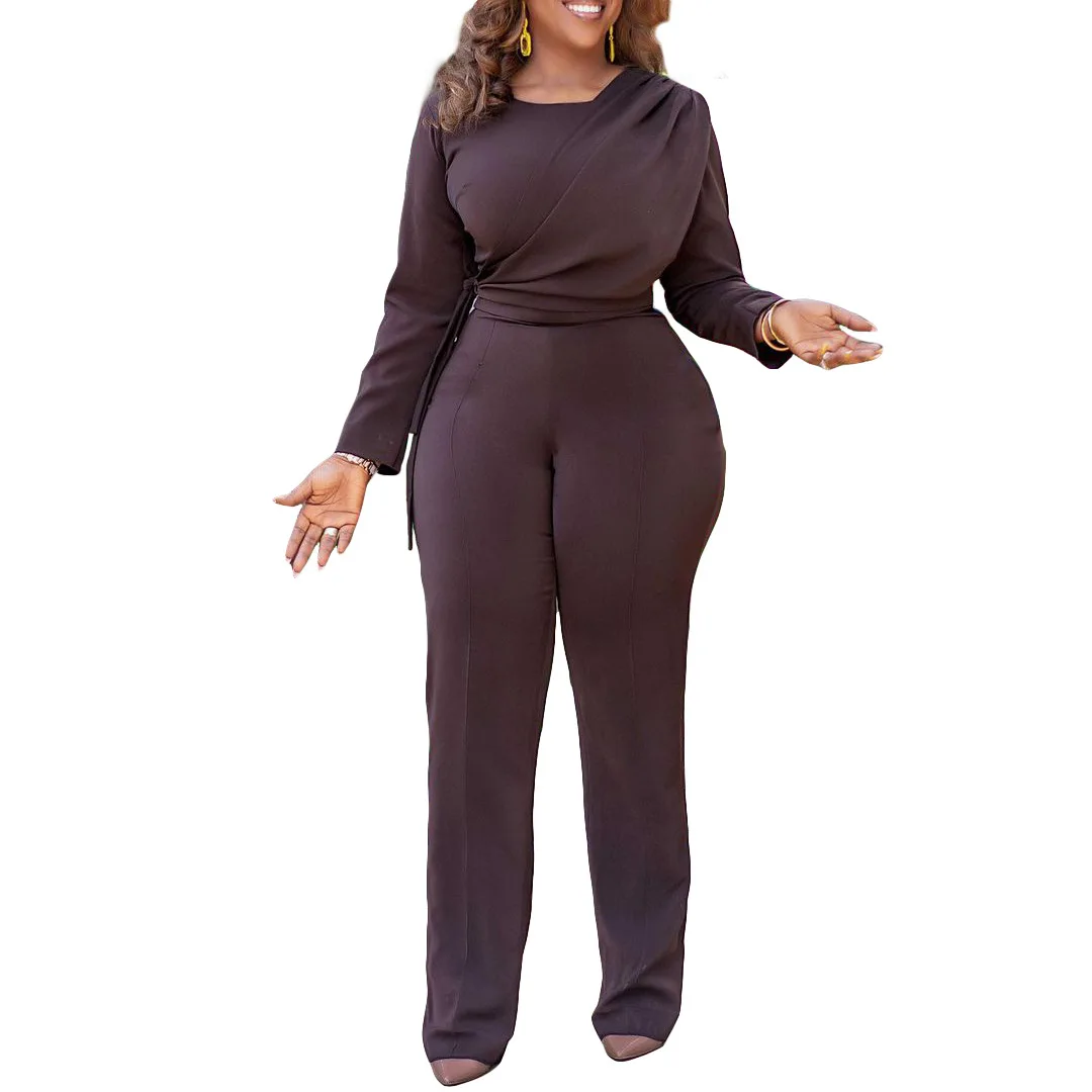 Wide Leg Casual Jumpsuit 2022 Women Long Sleeve Solid Slim Fit Ladies Overalls Red African Elegance Rompers Autumn Clothing