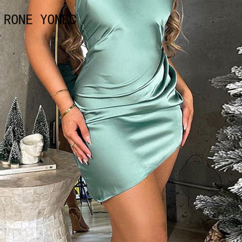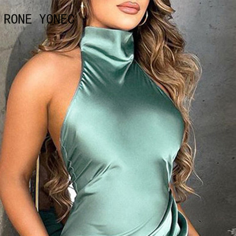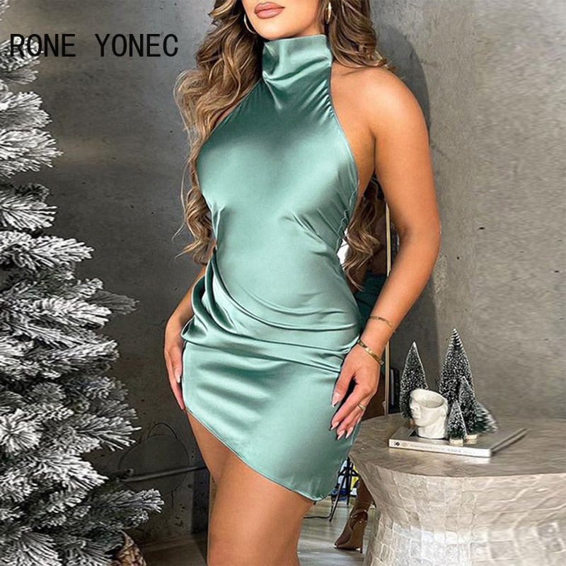 Women Solid Sexy Halter Sleeveless Mini Sexy Satin Backless Party Dresses