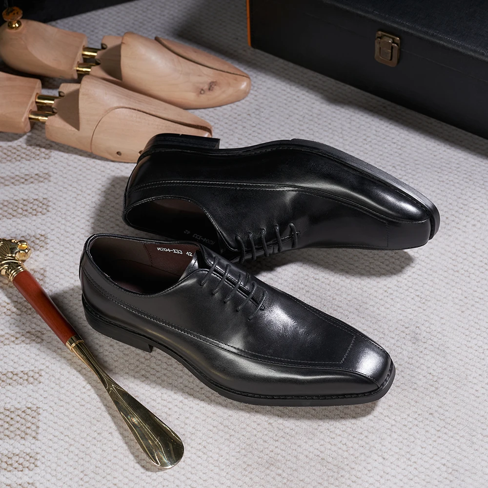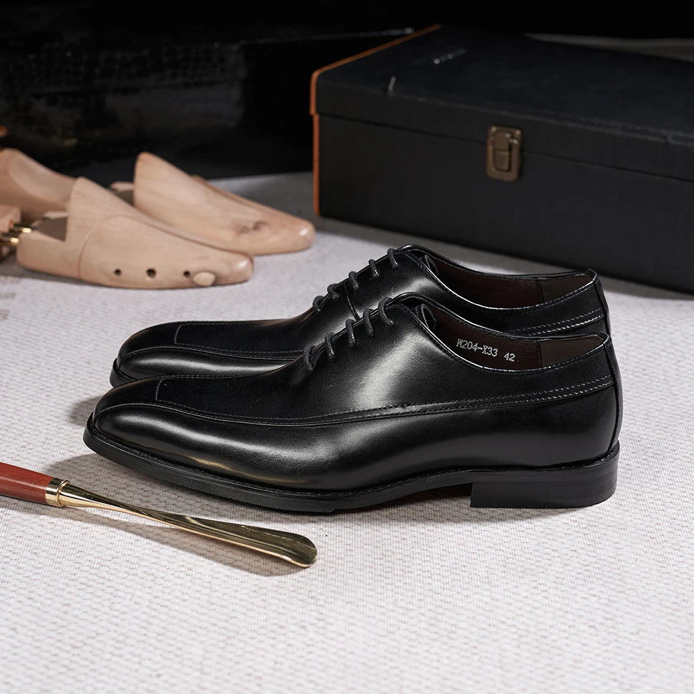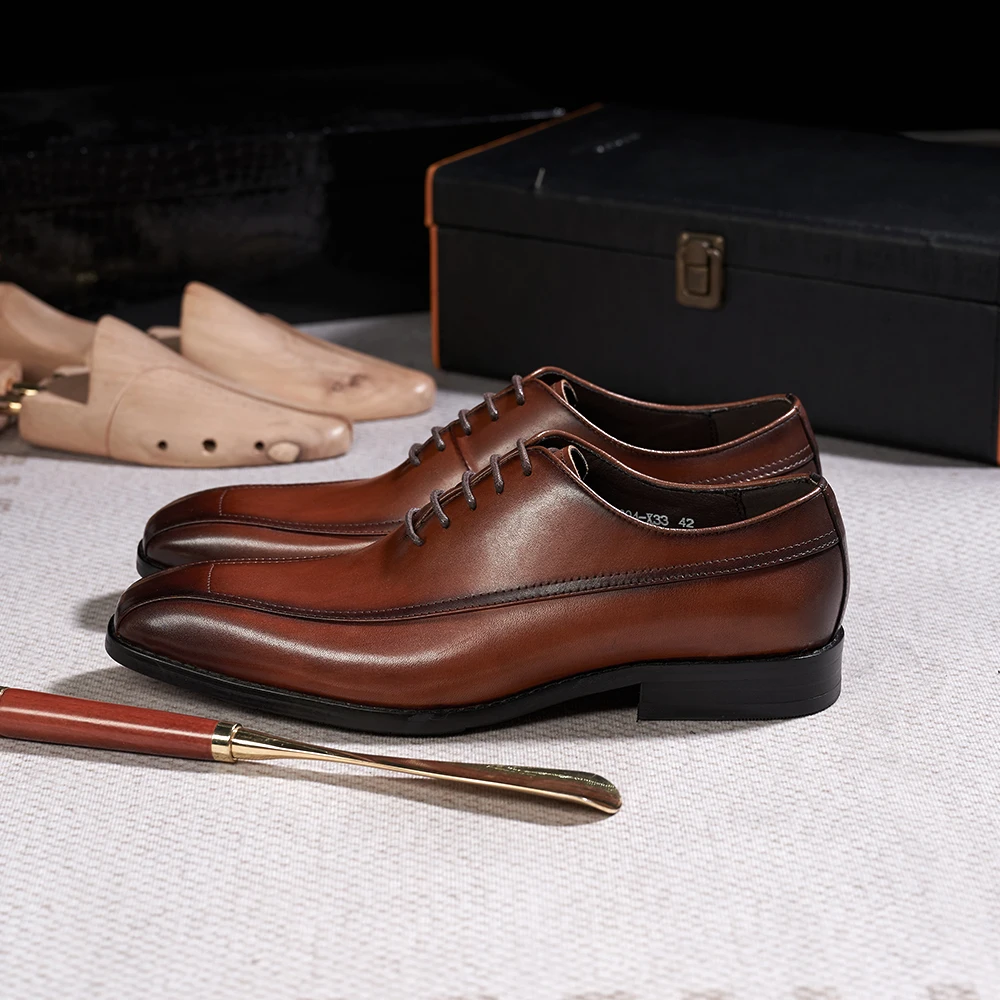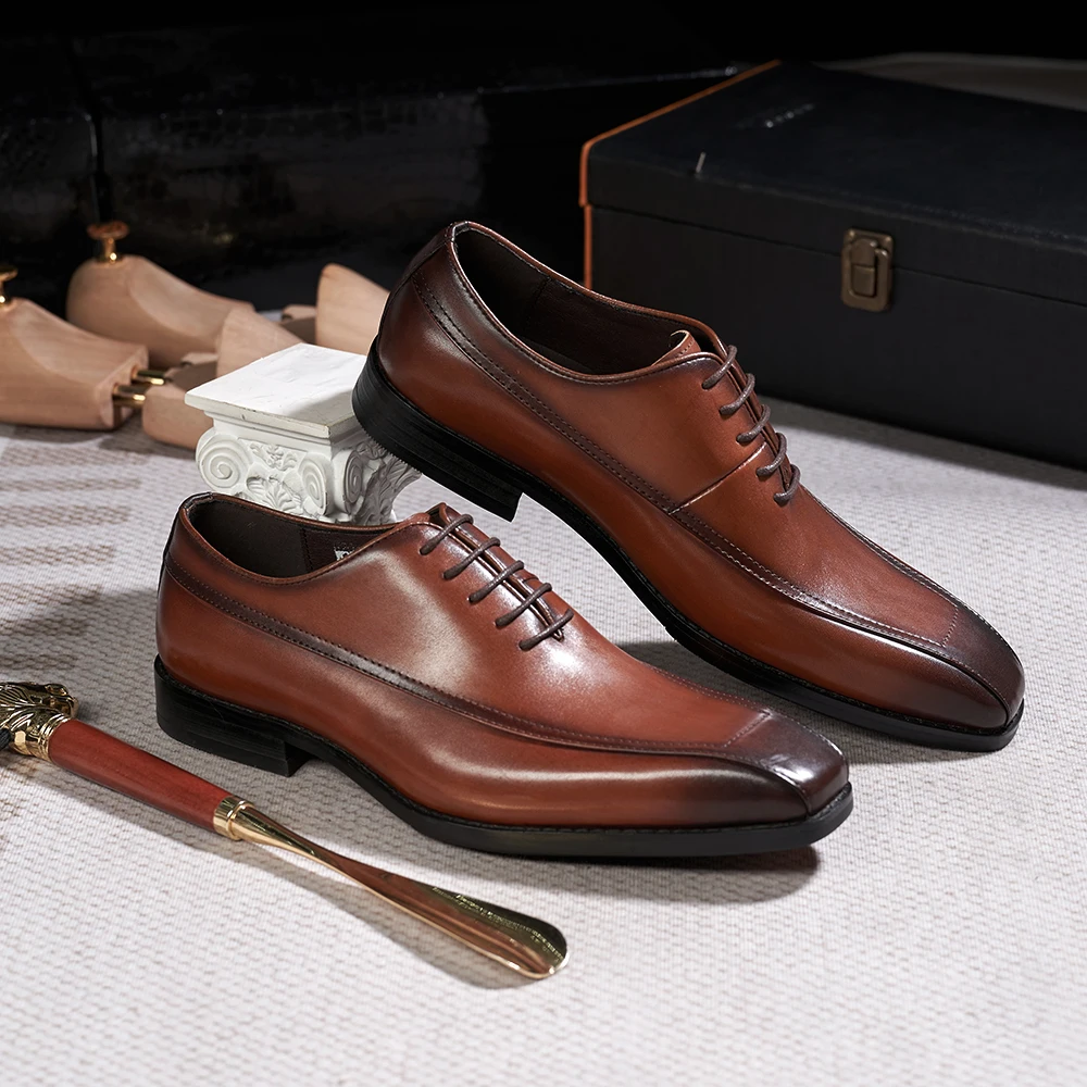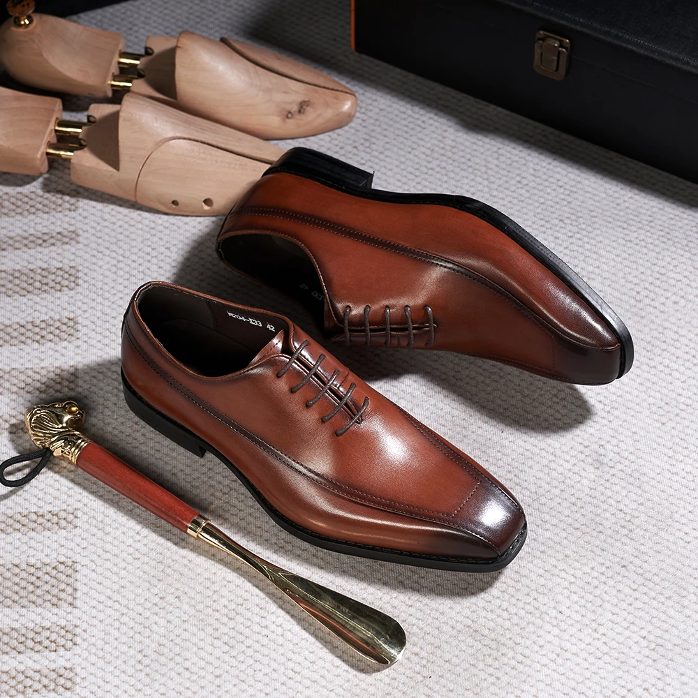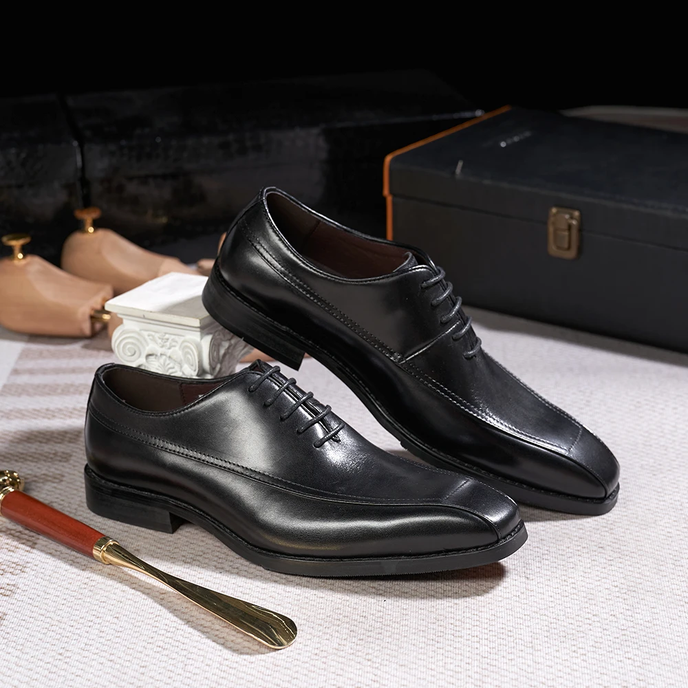Fashion Men's Oxfords Cow Leather Handmade Pointed Toe Wedding Suit Dress Shoes for Men Lace-Up Business Office Formal Footwear