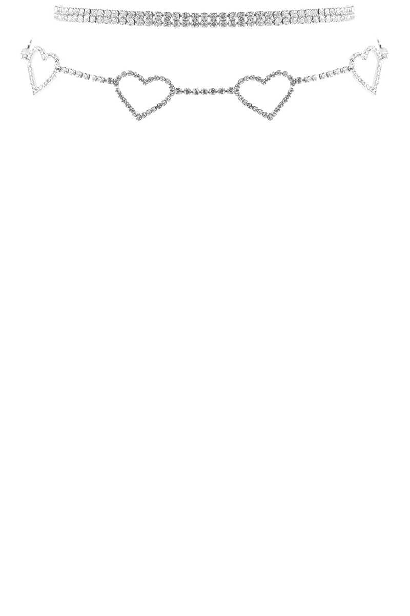 RHINESTONE 5 HEART CHOKER NECKLACE