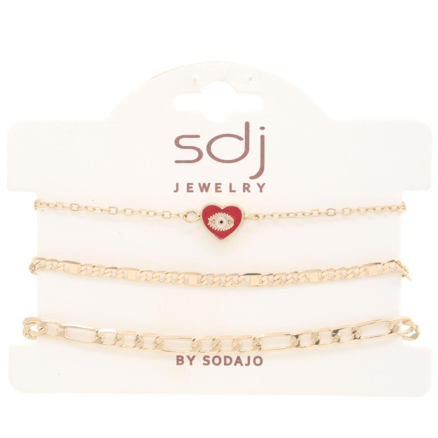 Sodajo Heart Charm Figaro Link Bracelet Set