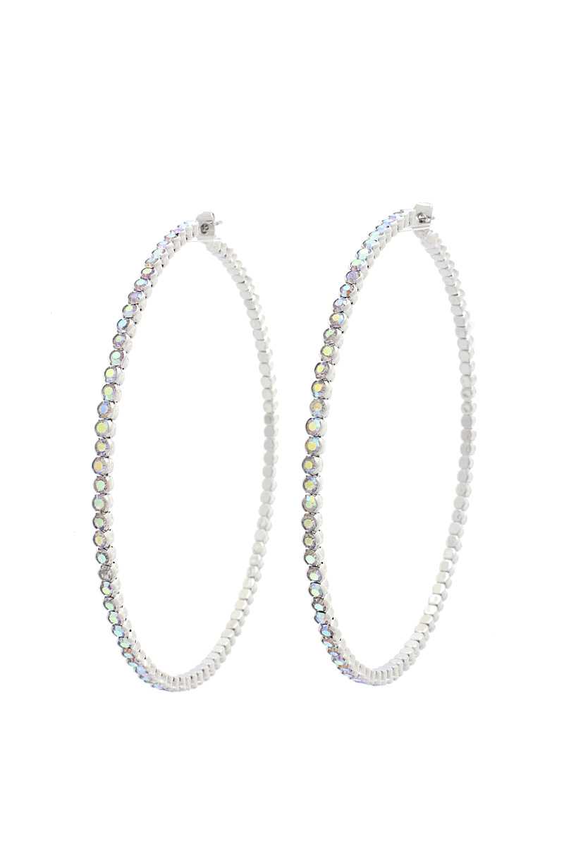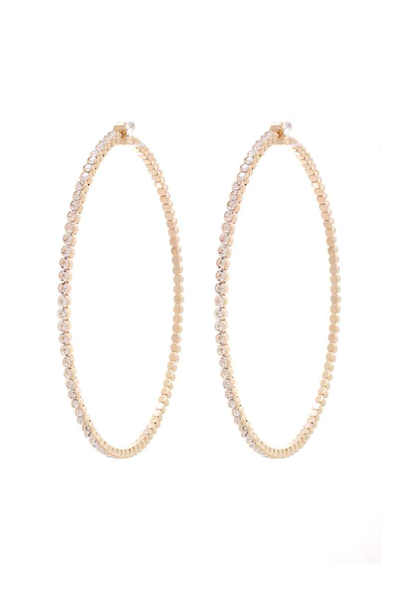 CLASSIC RHINESTONE METAL HOOP EARRING