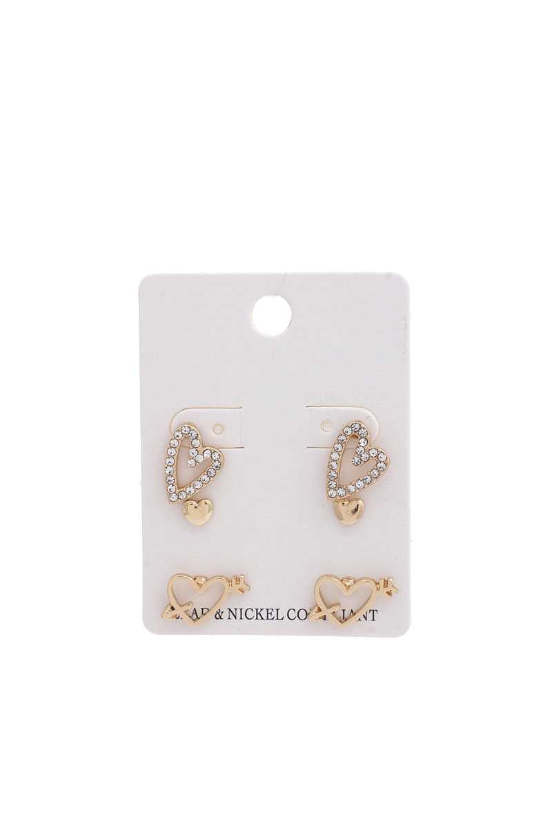 Slanted Rhinestone Heart Earring Set
