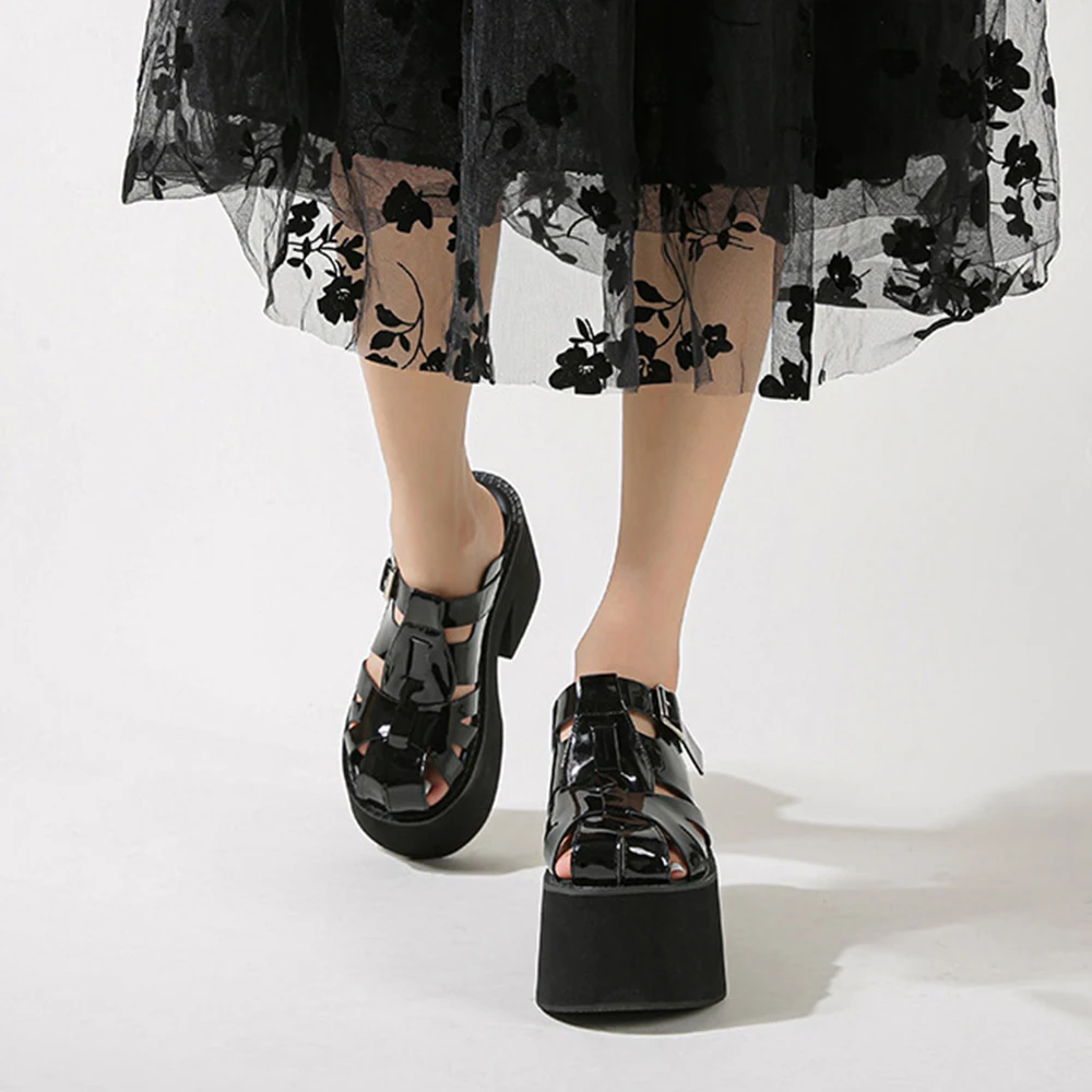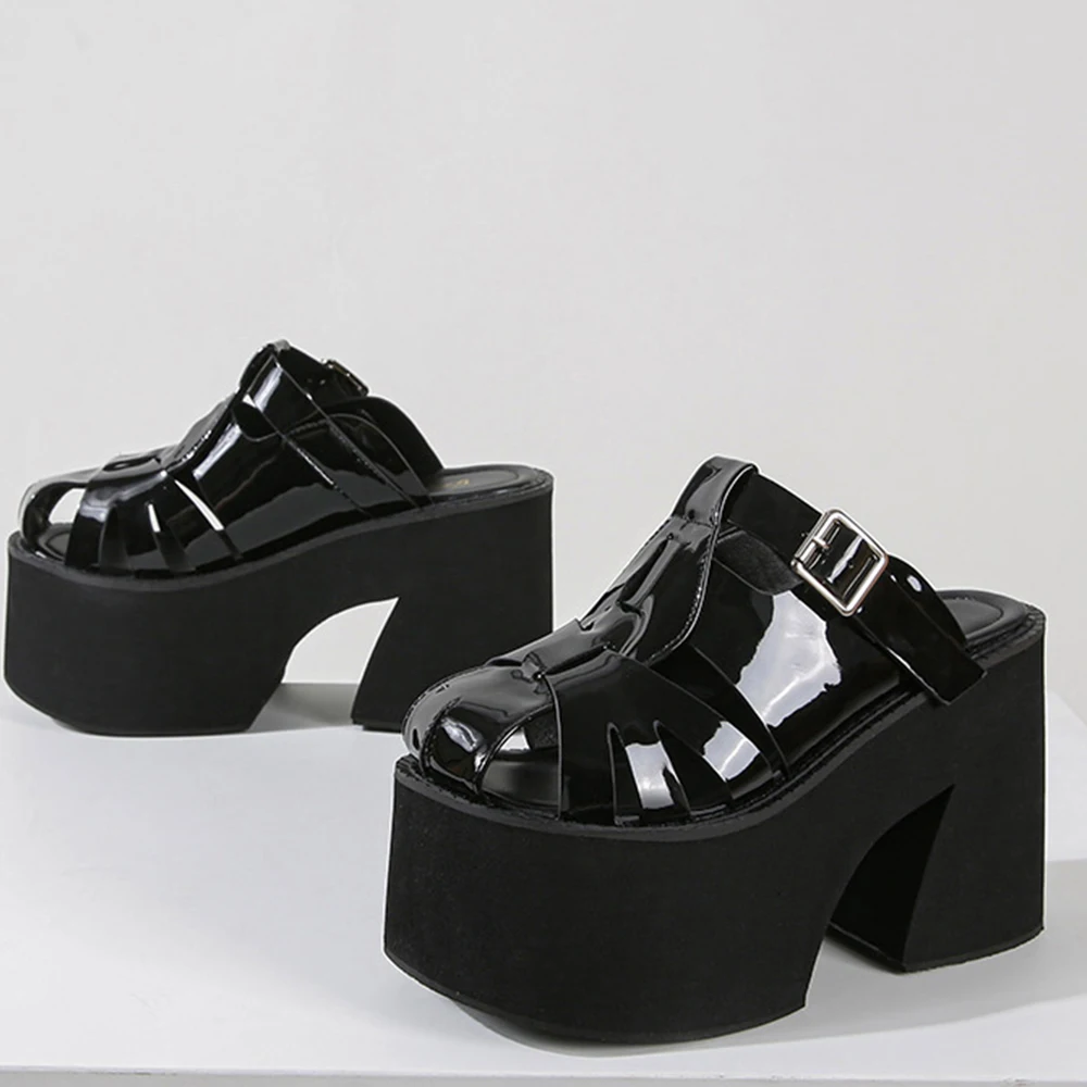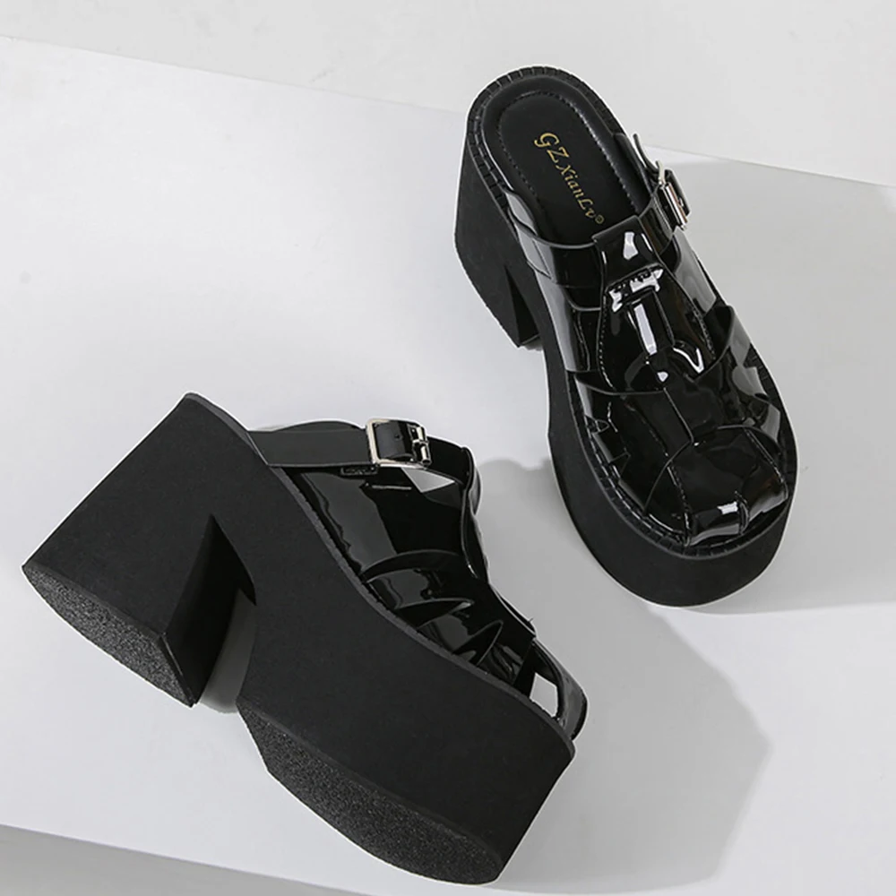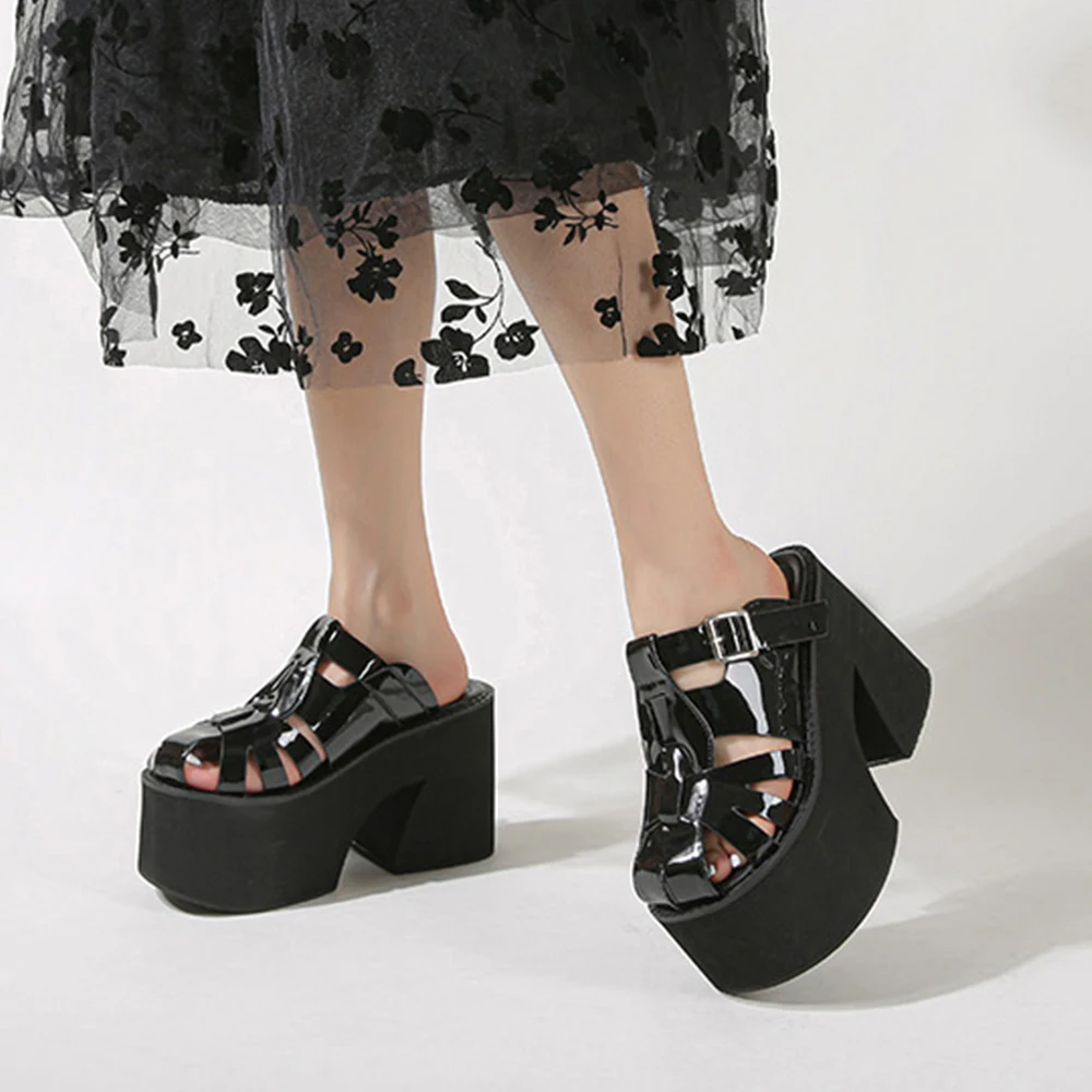 GIGIFOX Cover Toe Women Platform Chunky Heel Slides Sandals Slip On Cutout Goth Punk Style Casual Outdoor Mules Shoes Summer New
