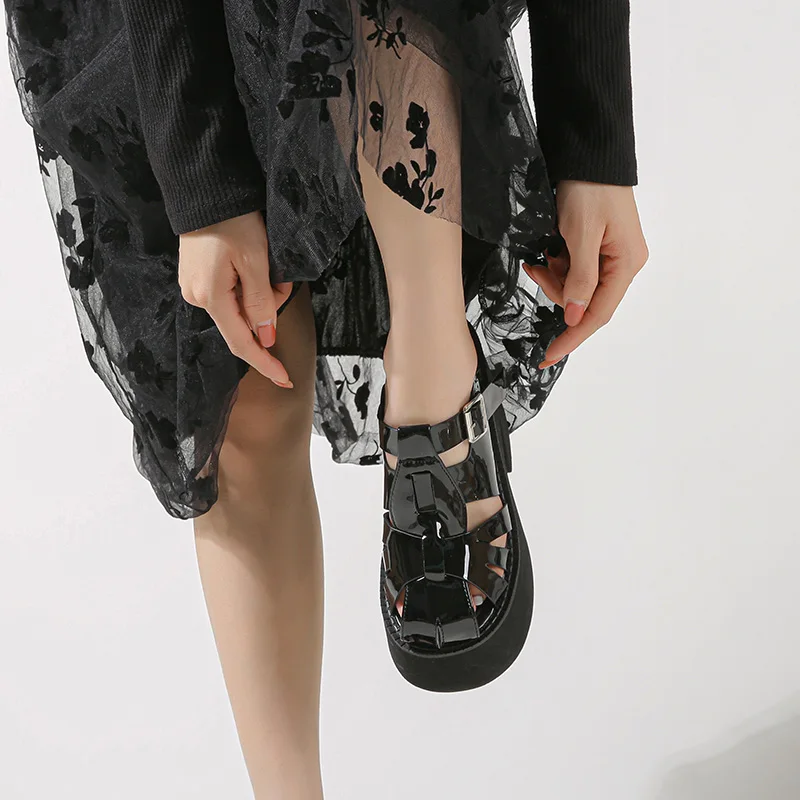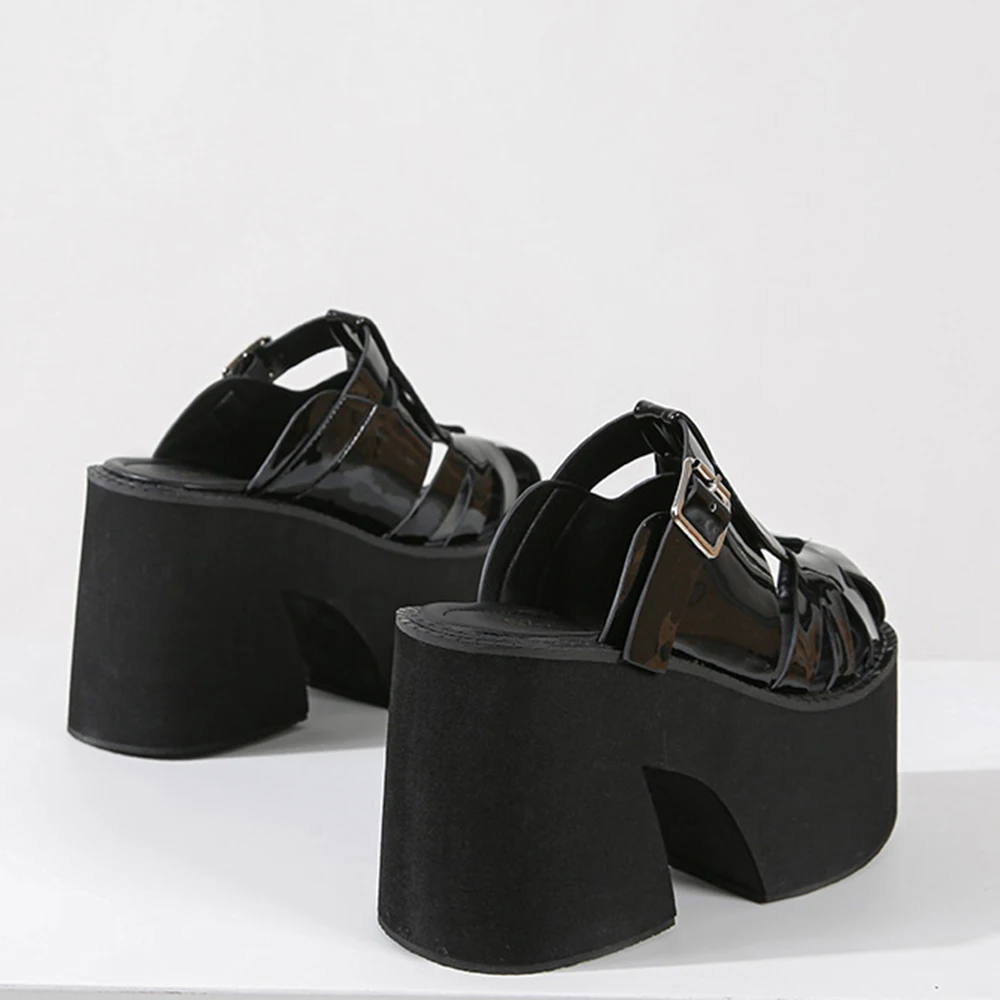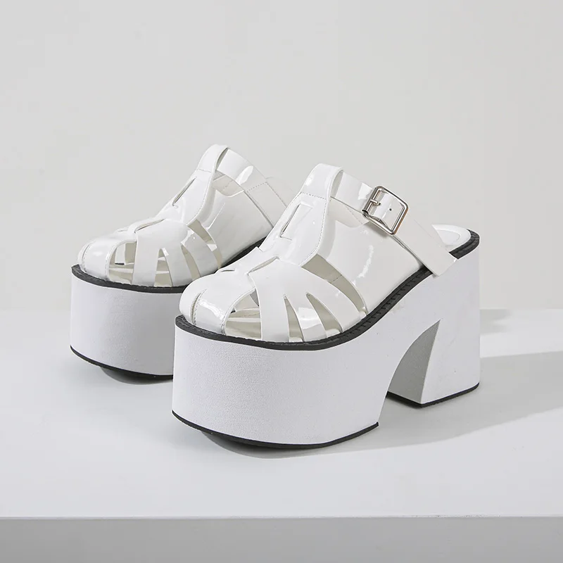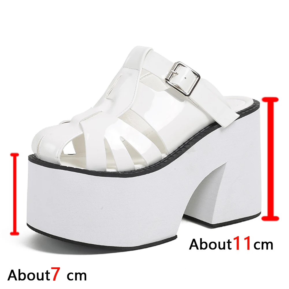 GIGIFOX Cover Toe Women Platform Chunky Heel Slides Sandals Slip On Cutout Goth Punk Style Casual Outdoor Mules Shoes Summer New