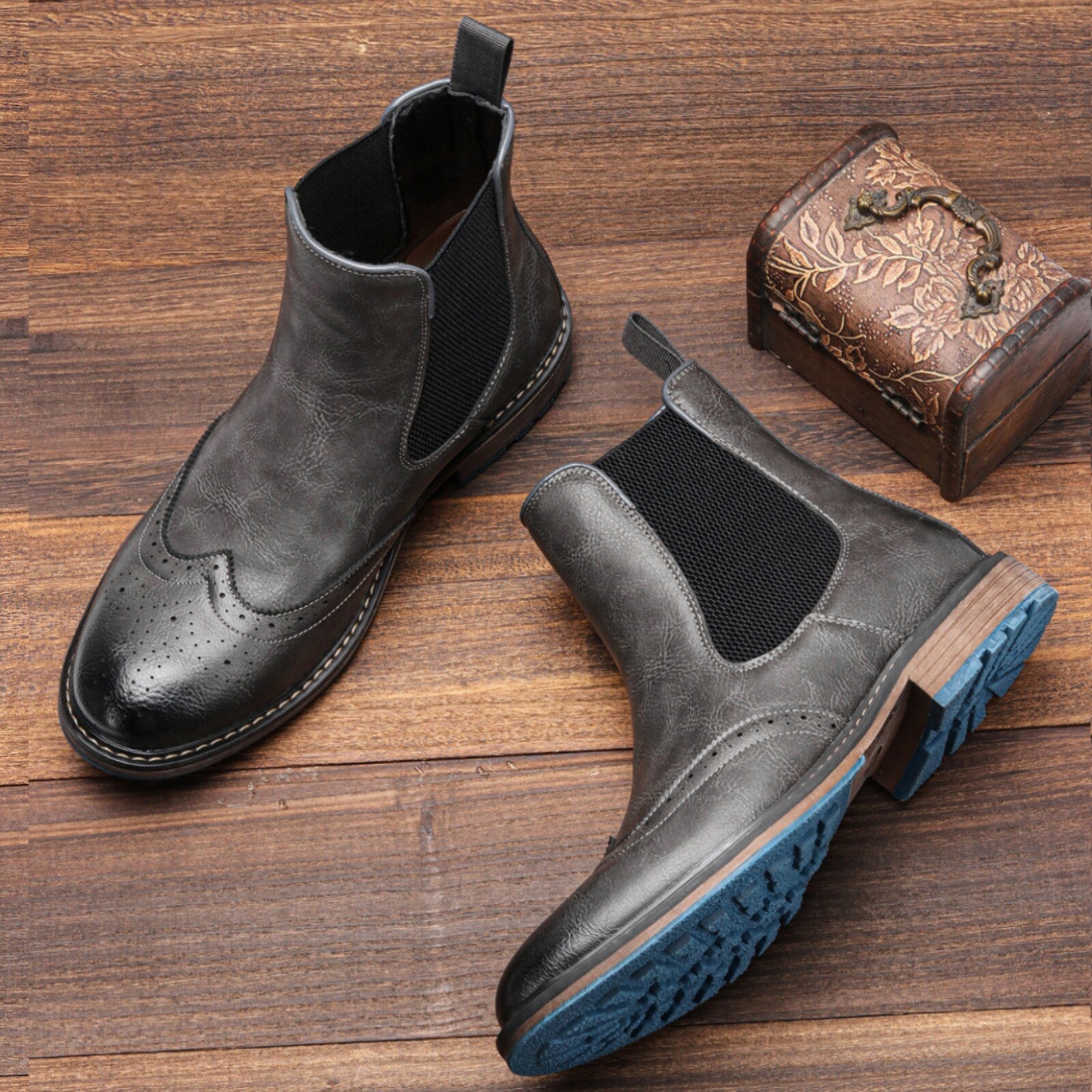HECRAFTED 39~48 Brogue chelsea boots comfortable brand fashion 2023 boots leather