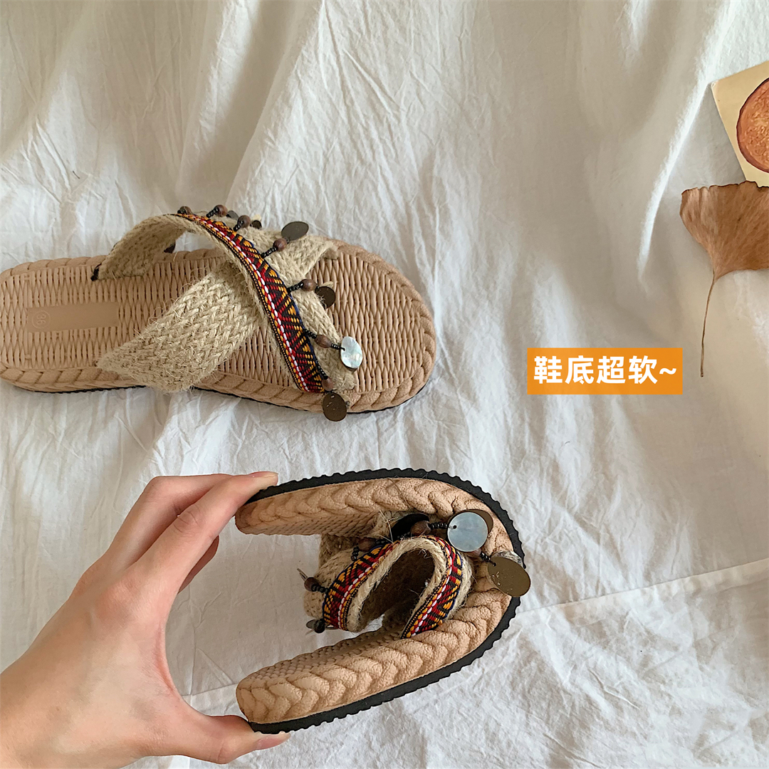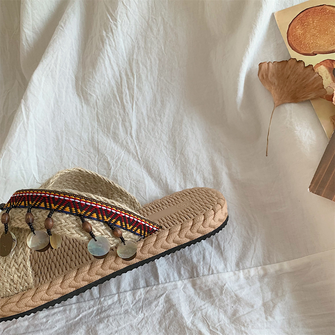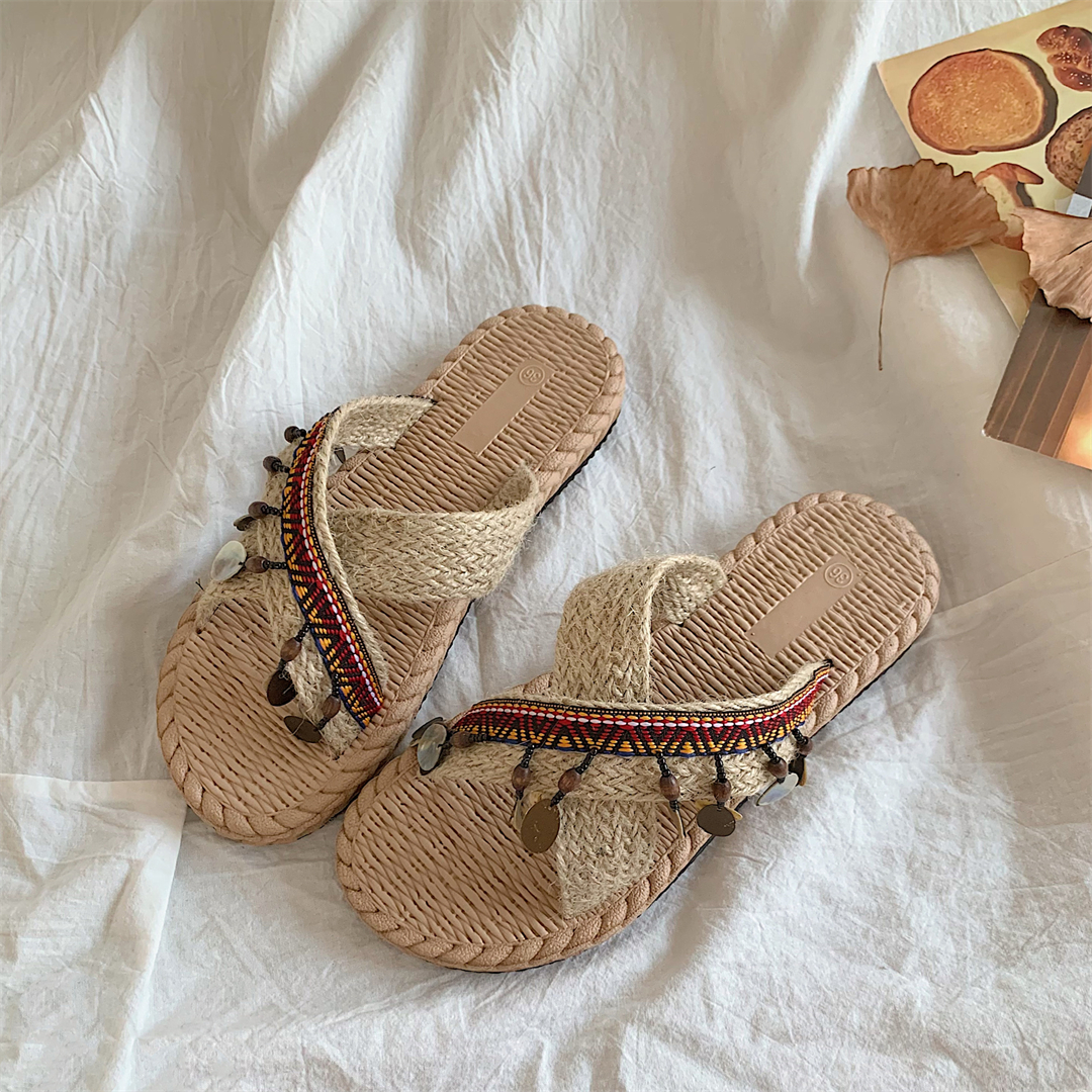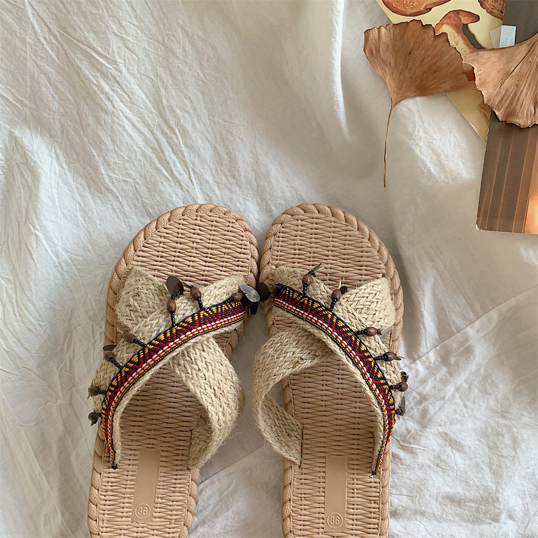 INS Handmade Thai Style Woven Beach Slippers Women's Summer Outdoor 2024 New Vacation Ethnic Style Sandals