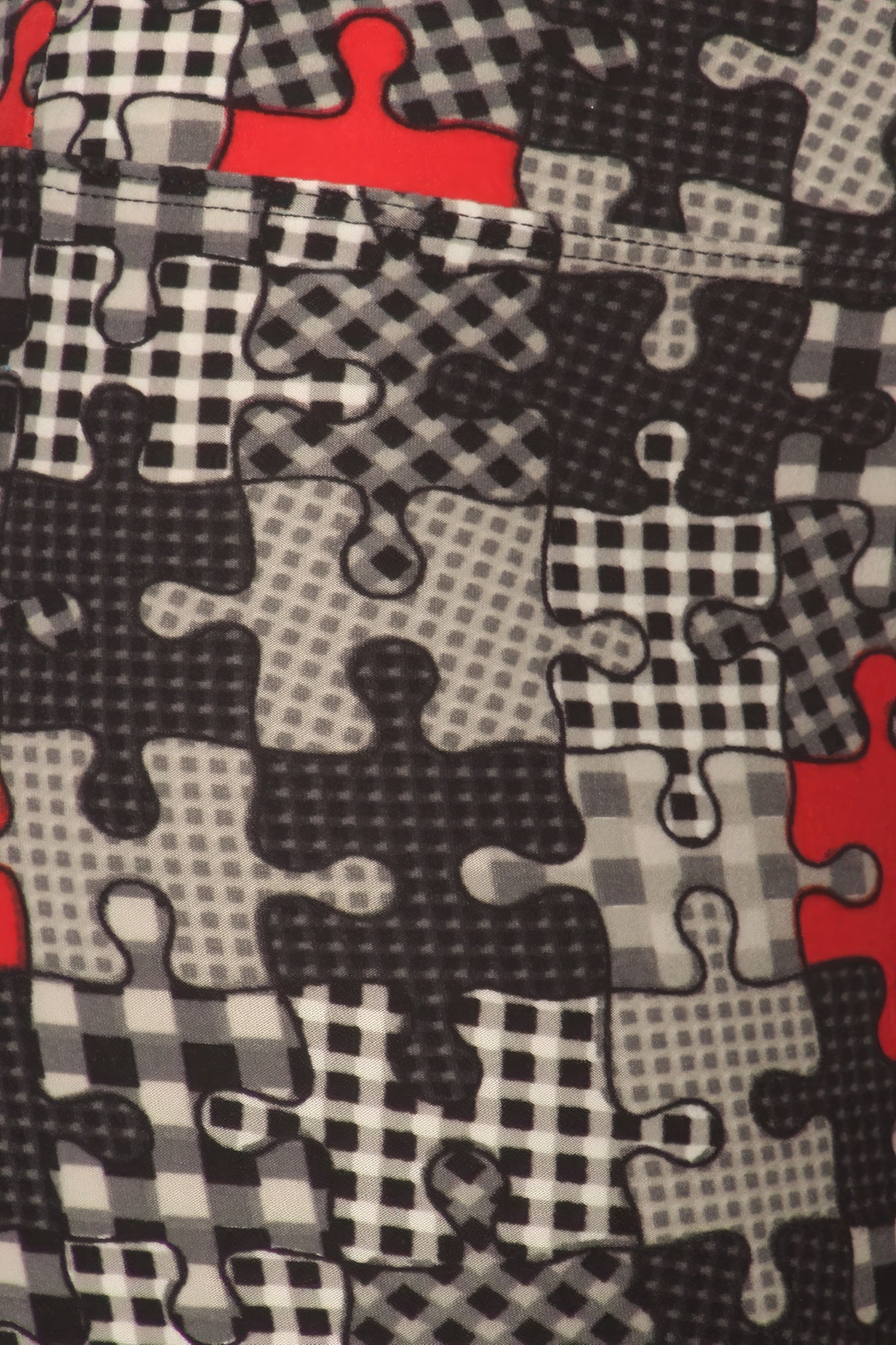 Elevate your activewear game with our YOGA Style Banded Lined Puzzle Printed Knit Leggings. Add them to your cart now and experience the perfect blend of fashion and comfort!