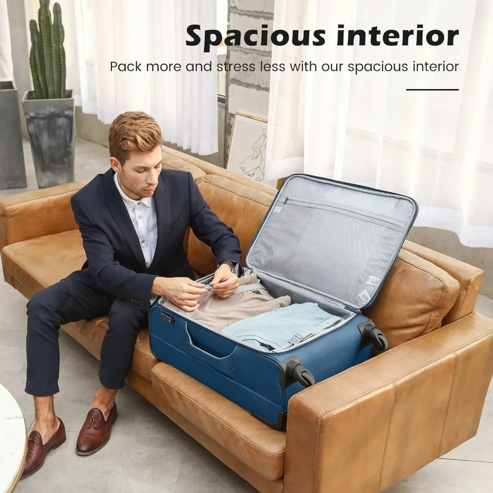 - The sets include a 20 inch carry-on luggage, 24 inch medium luggage, 28 inch large luggage and a 15 inch tote bag.