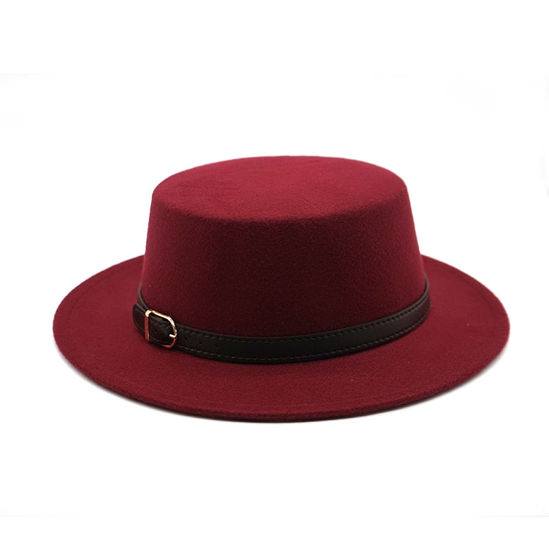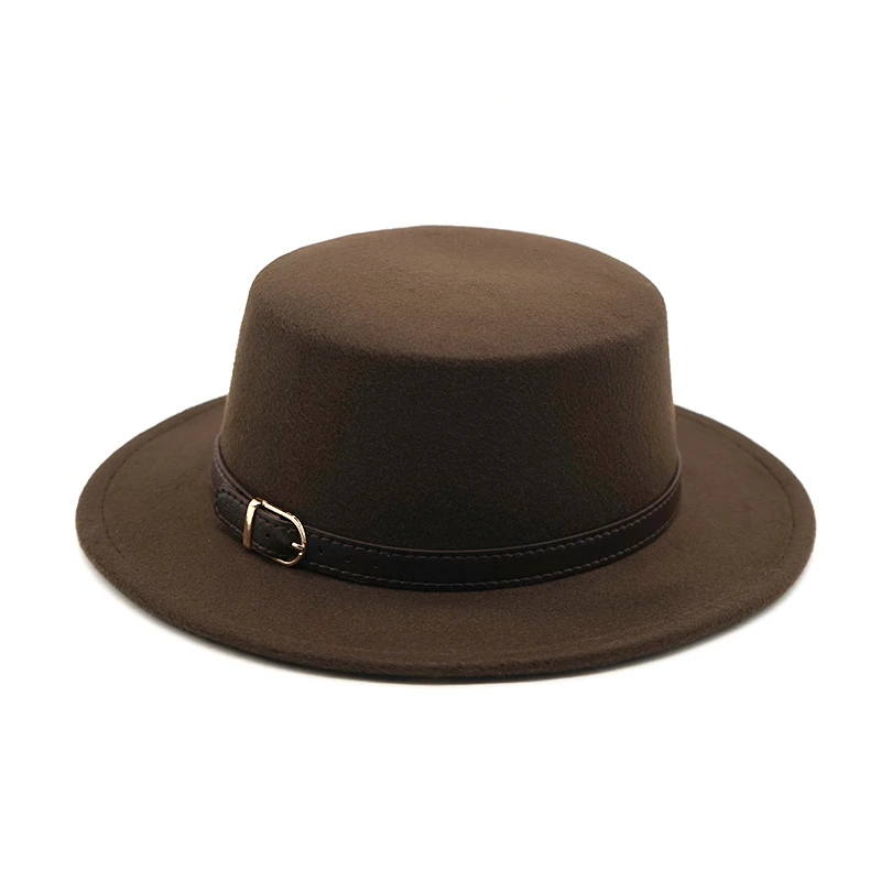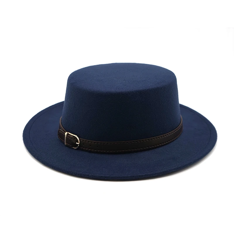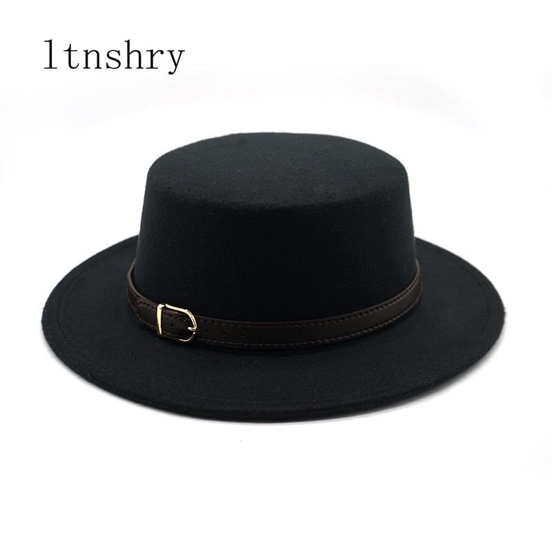 New Retro Winter Autumn women men Top hat Imitation Woolen Felt Fedora Hats Belt buckle Decorated ladies Boater Hat flat brim