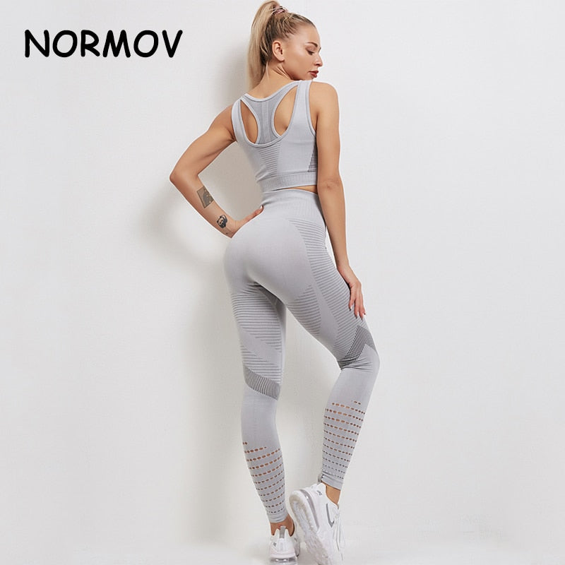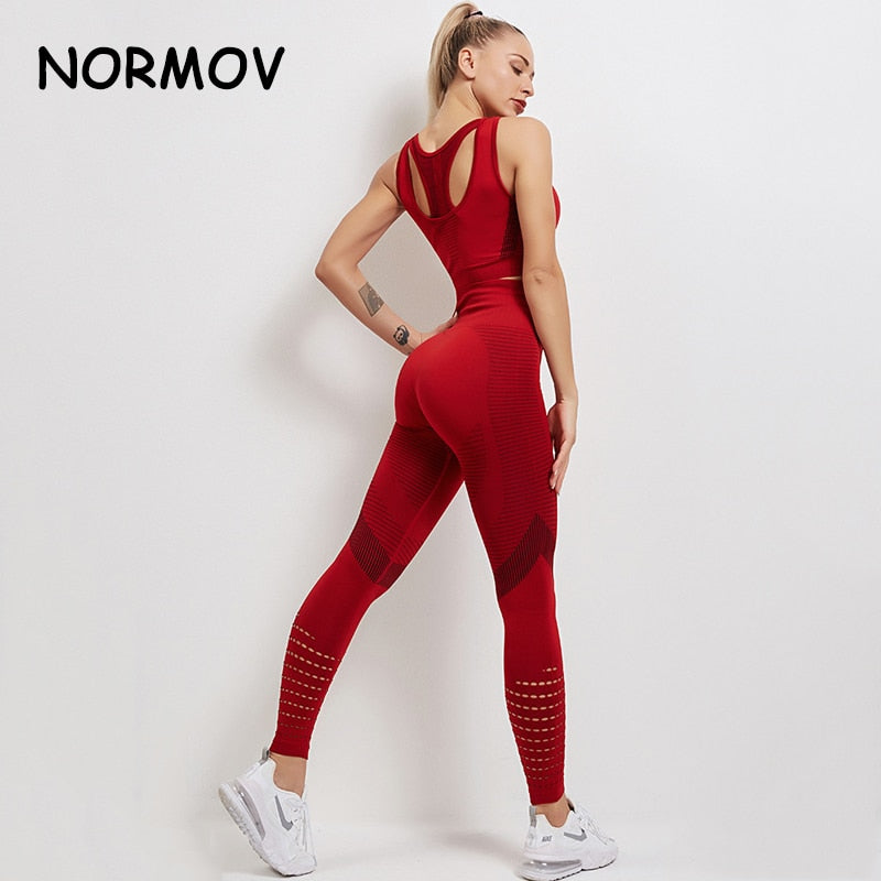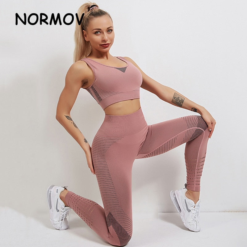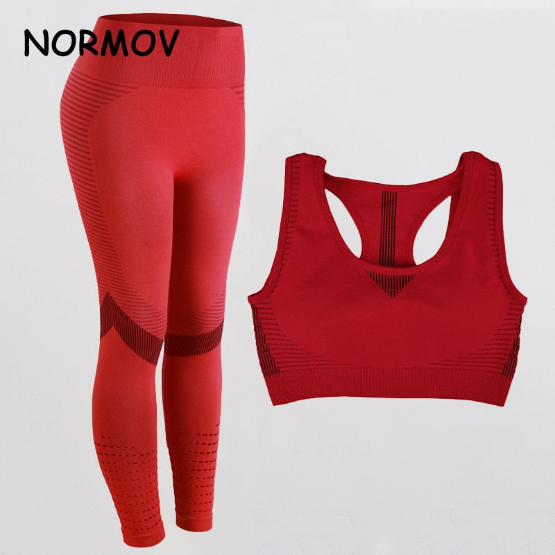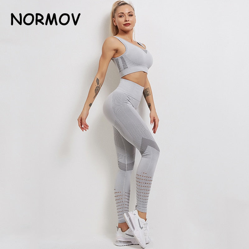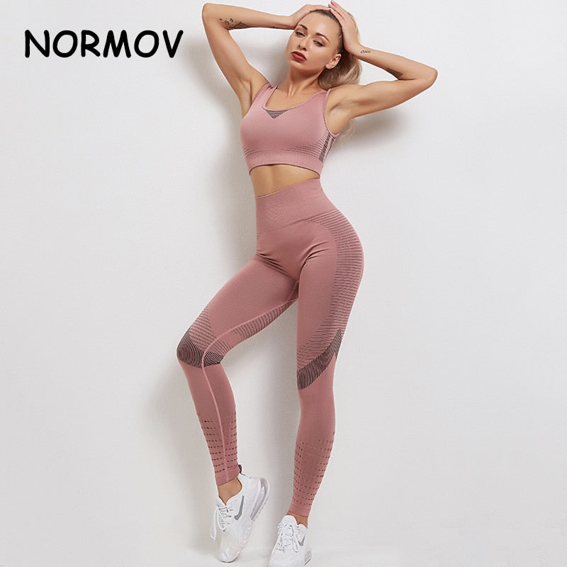 NORMOV High Elasticity Sports Set Women Gym High Waist Fitness Workout Leggings Seamless Sports Suit Sportswear Activewear Suit