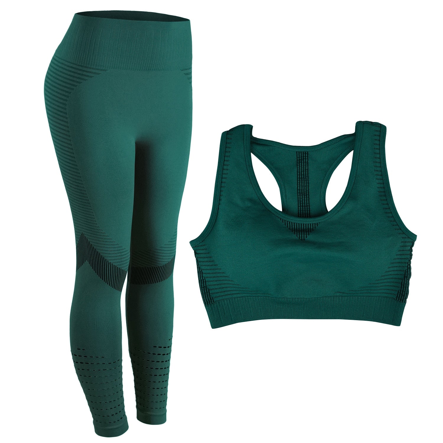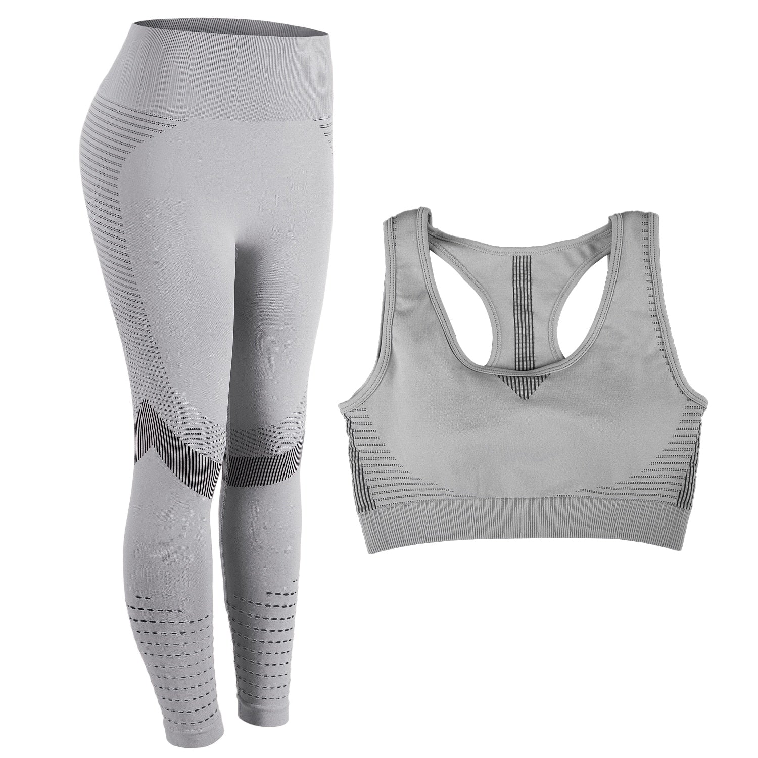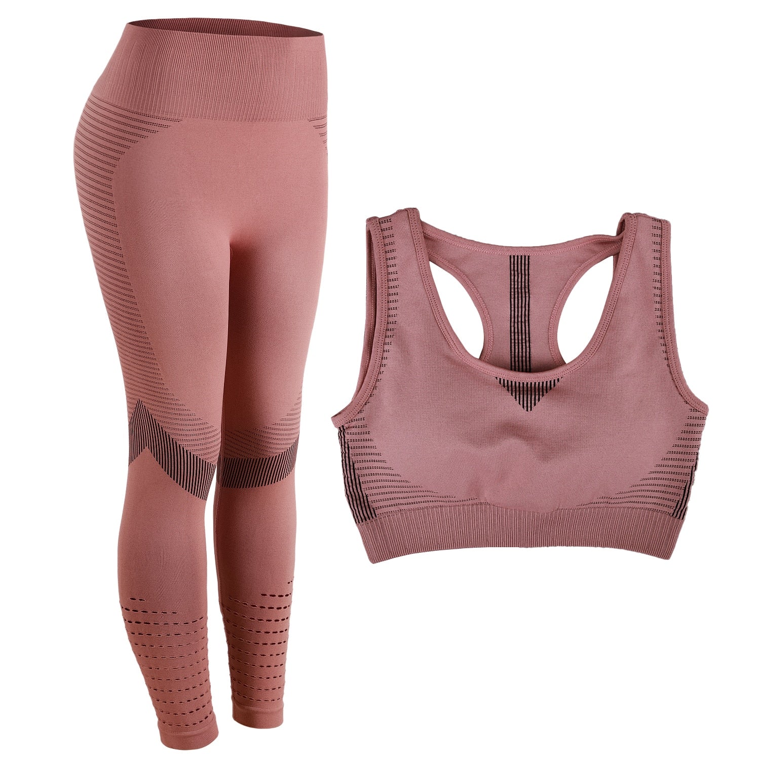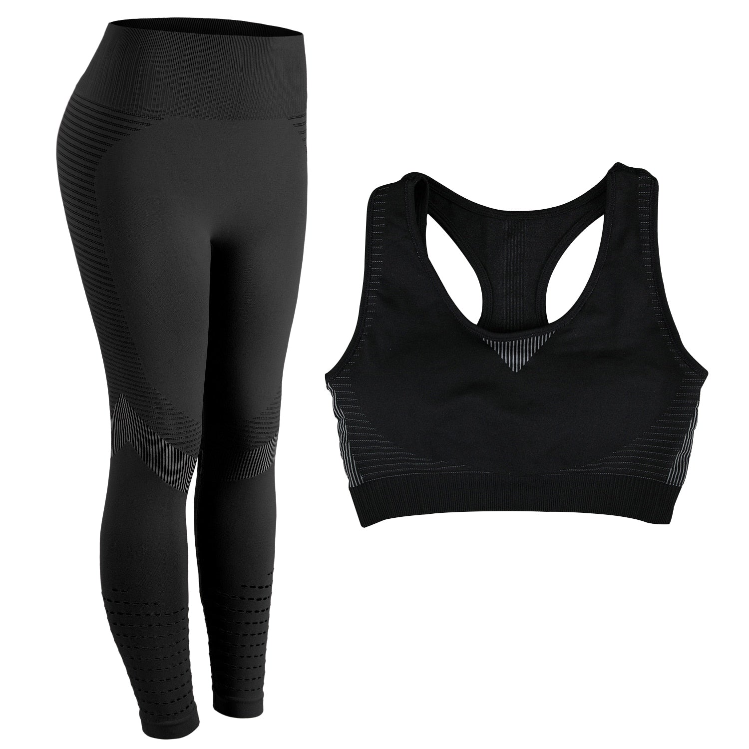 NORMOV High Elasticity Sports Set Women Gym High Waist Fitness Workout Leggings Seamless Sports Suit Sportswear Activewear Suit