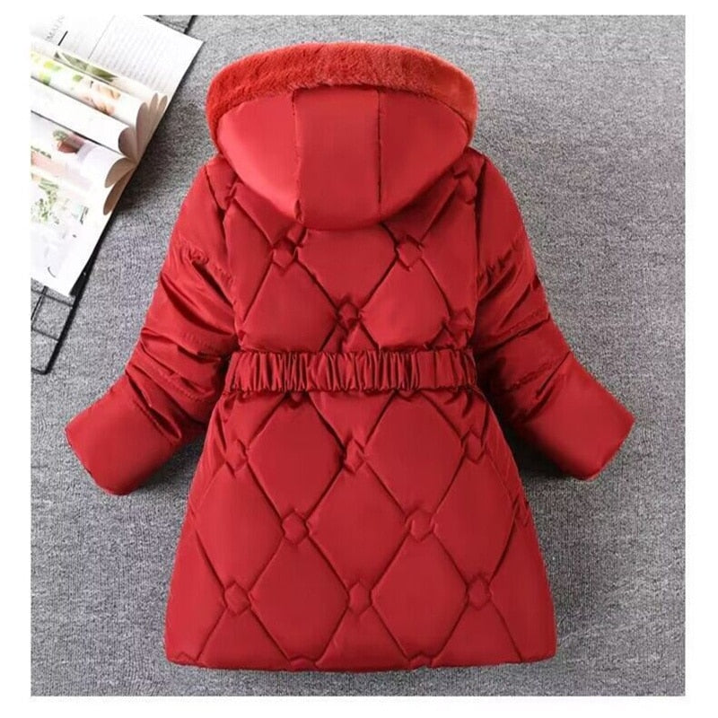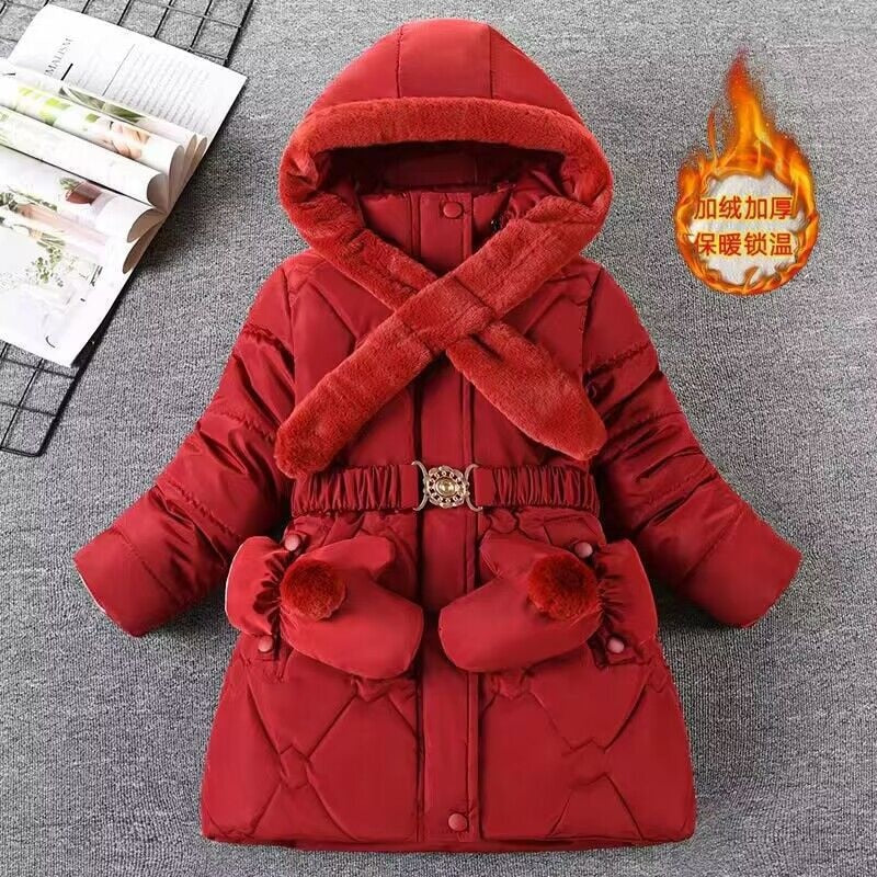 Winter Girls Thick Coats Fleece Warm Down Cotton Mid-Length Jackets Gloves Hooded Parka Coats Children's Outerwear Clothes