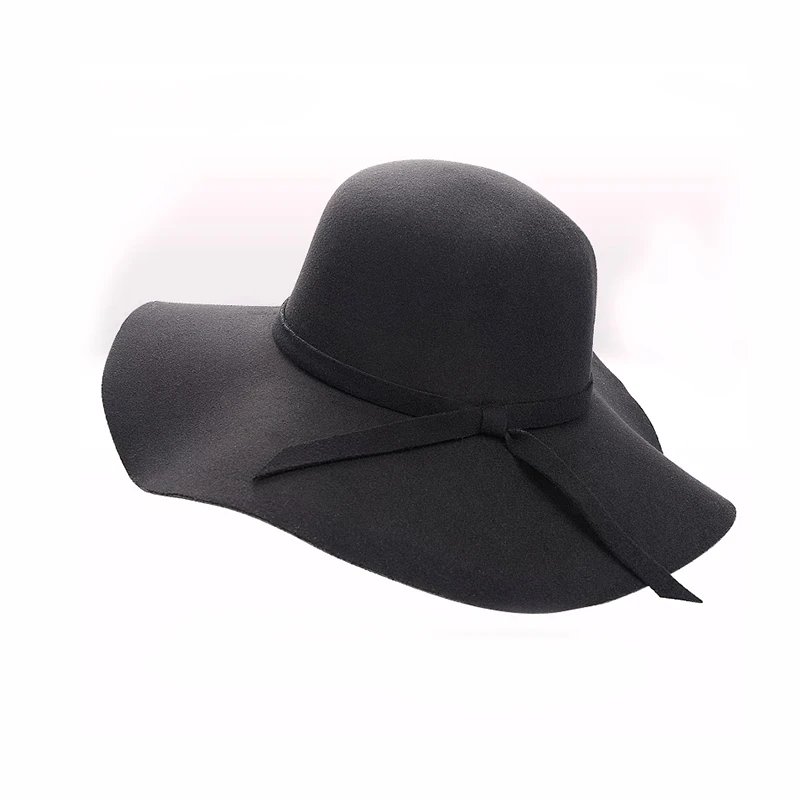Women's Wide Brim Felt Bowler Faux Wool Fedora Hat Floppy Sun Bowknot Cloche Cap Bowlers Hat for Ladies gorros mujer invierno