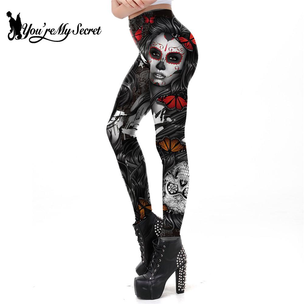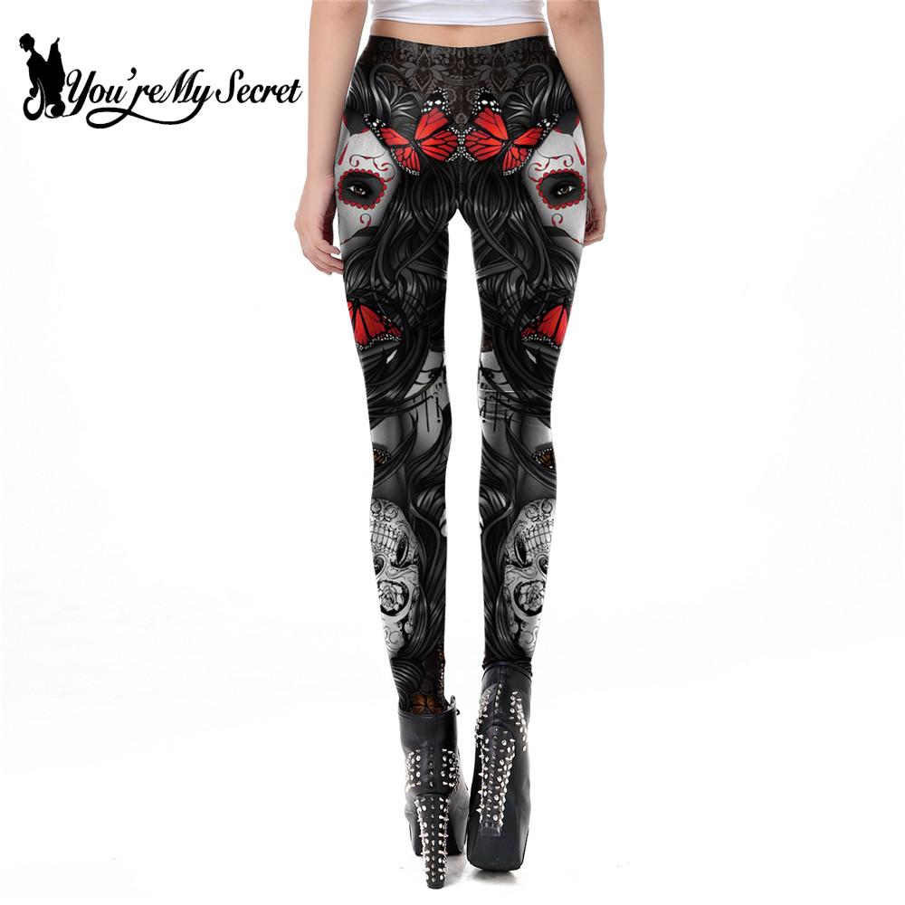 [You're My Secret] 2021 New Gothic Printed Leggings For Women Halloween Skull Sexy Legging Rose Pattern Fitness Workout Leggins