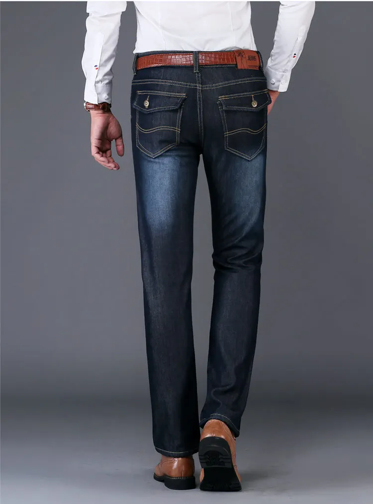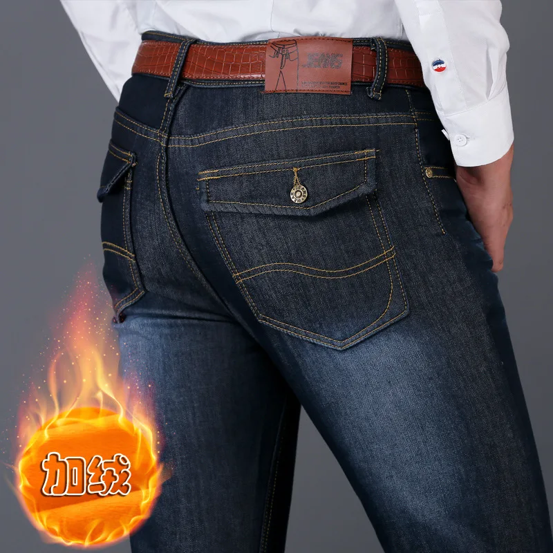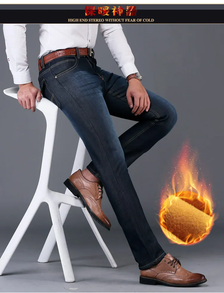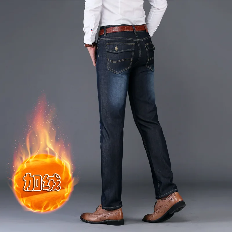 2021 Fleece Casual Jeans Men Business Straight Jeans Stretch Denim Pants Trousers Slim Fit Classic Cowboys Young Man Jeans
