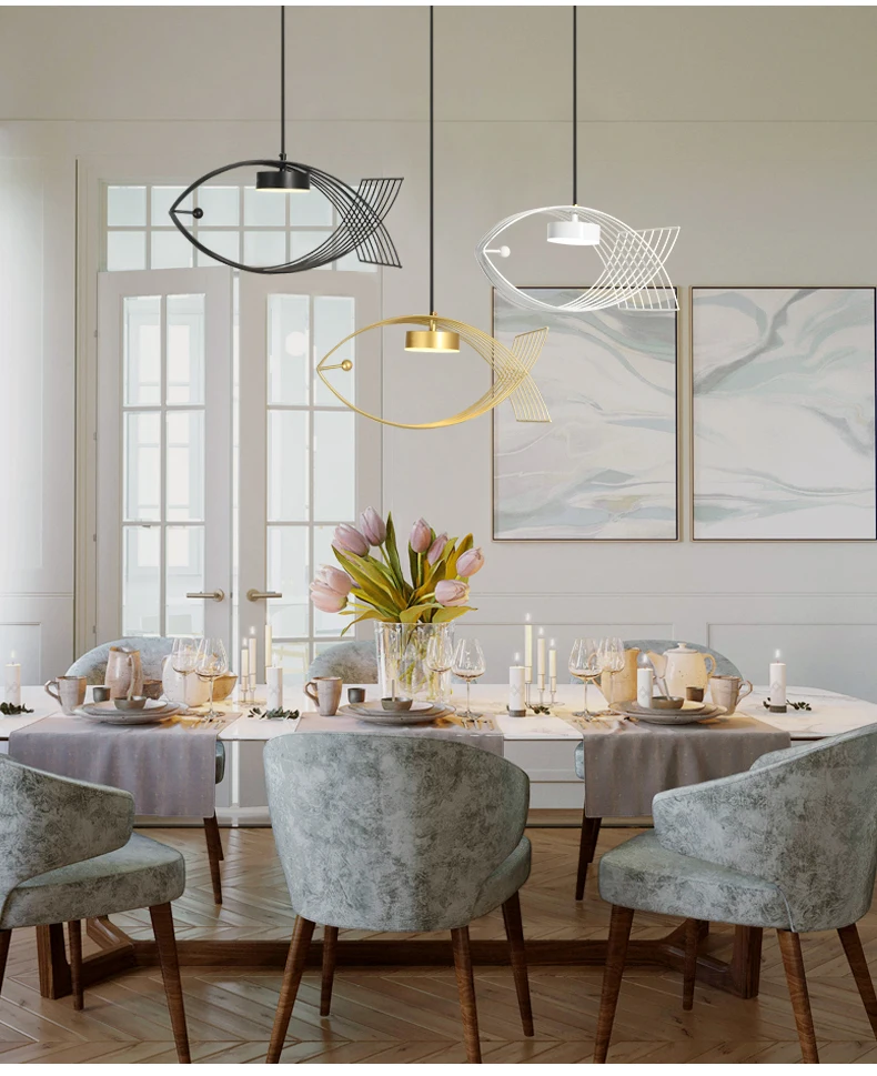 American Fish Shaped Pendant Lights Modern Bedroom Kitchen Living Room Chandelier Dining Room Chandelier Hot Pot Restaurant Lamp