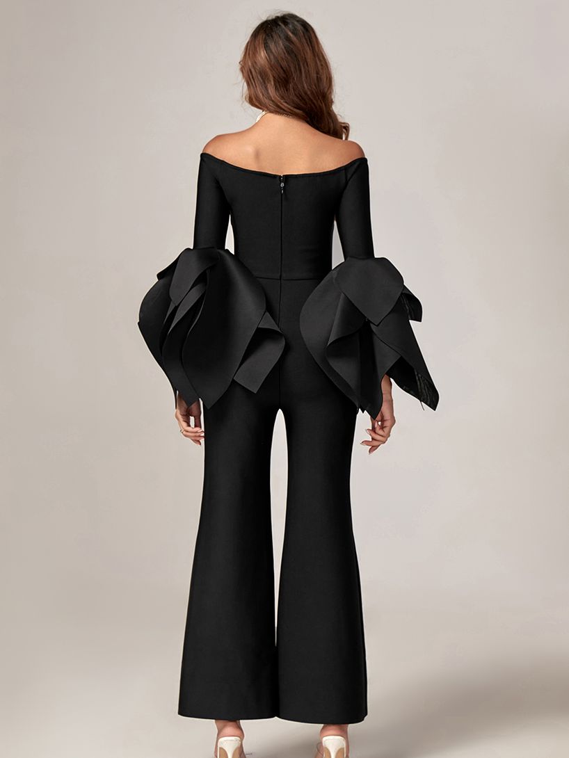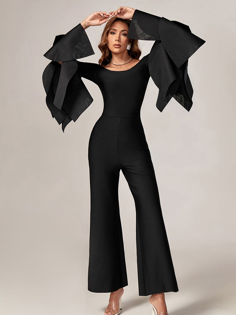 Bandage Jumpsuit for Women Black Elegant Party Jumpsuit Bodycon Ruffle Sexy Wide Leg Birthday Evening Club Outfits 2023 Summer