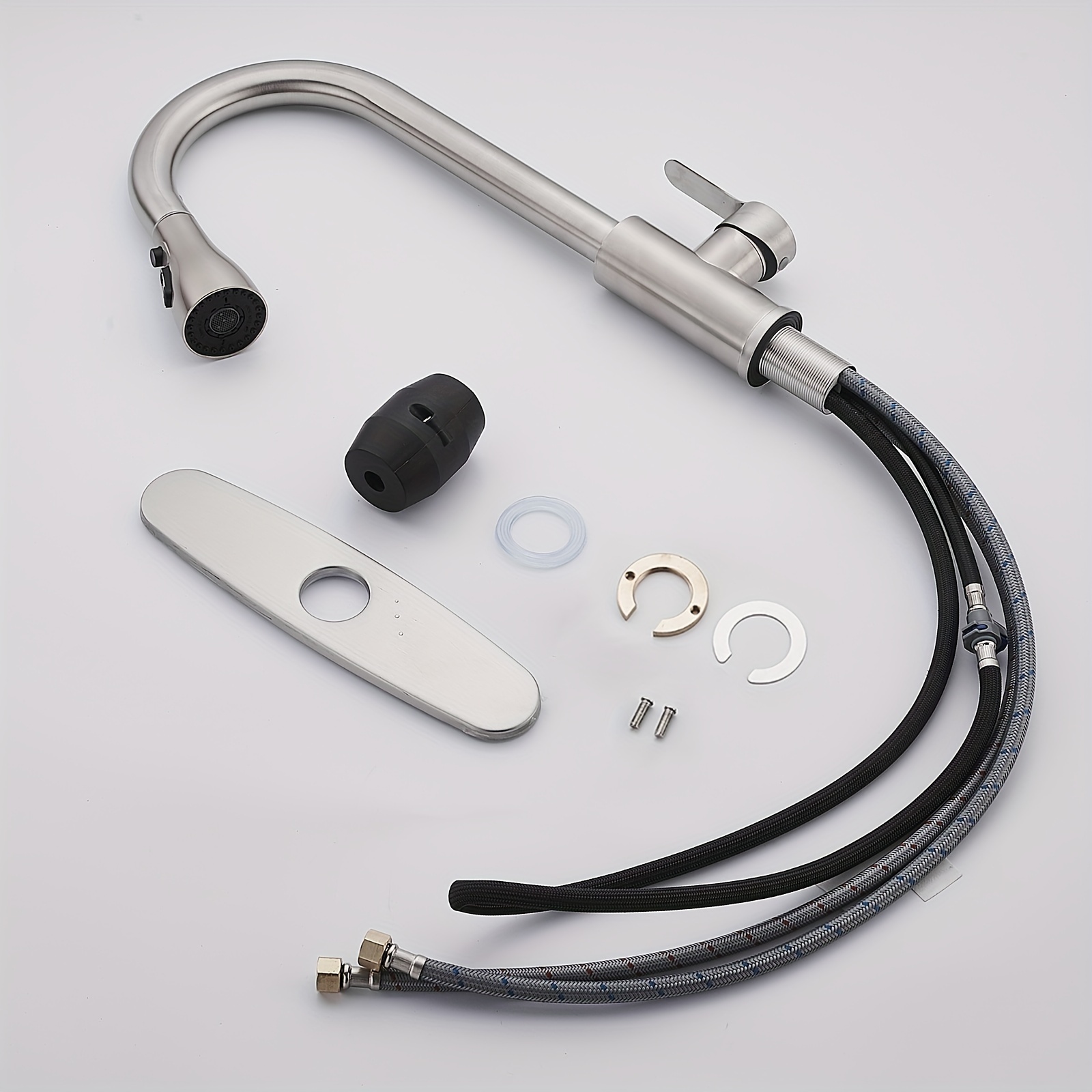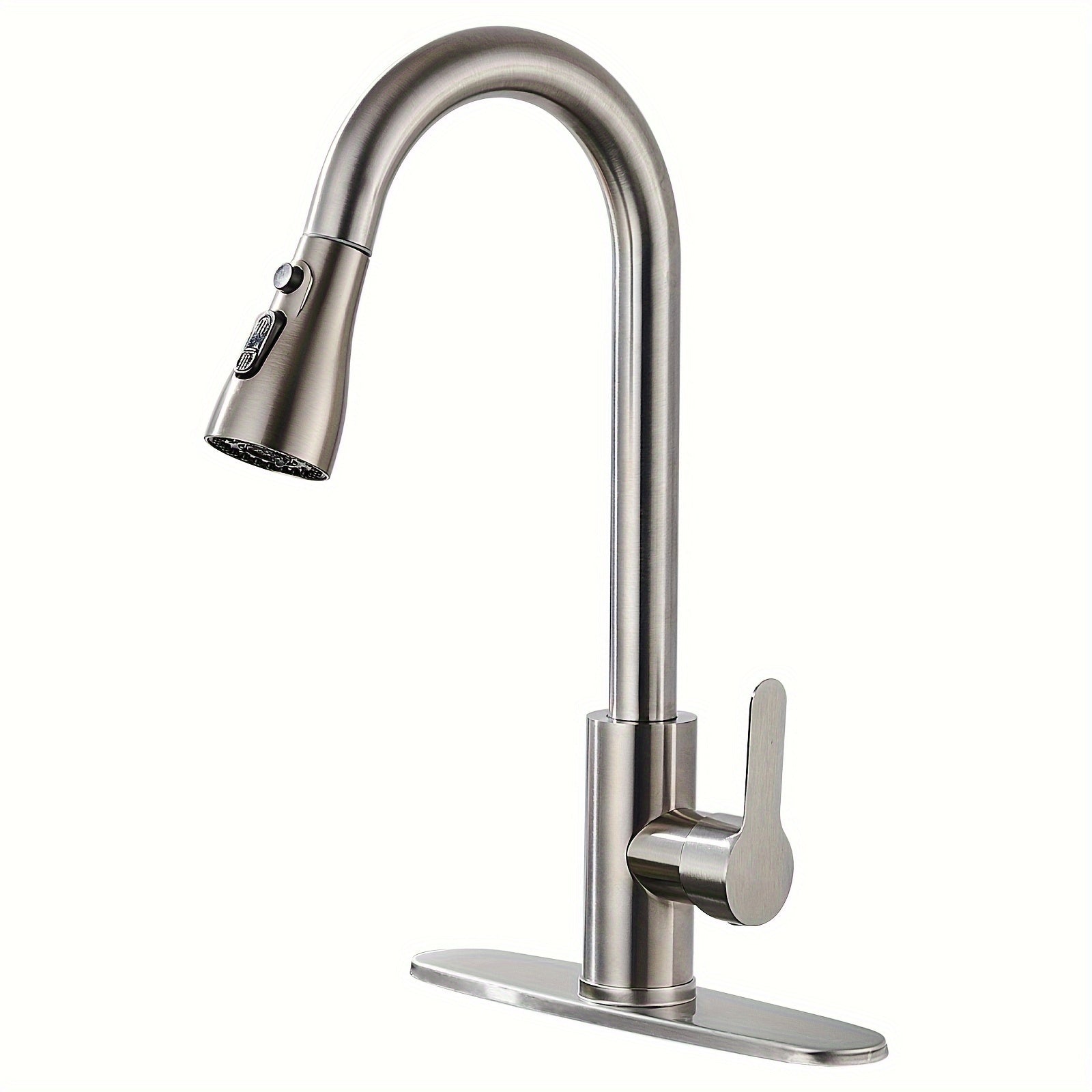 ECLERBC Single Handle High Arc Brushed Nickel Pull Out Kitchen Faucet, Single Level Stainless Steel Kitchen Sink Faucets With Pull Down Sprayer For Kitchen Bathroom (Brushed Nickel)