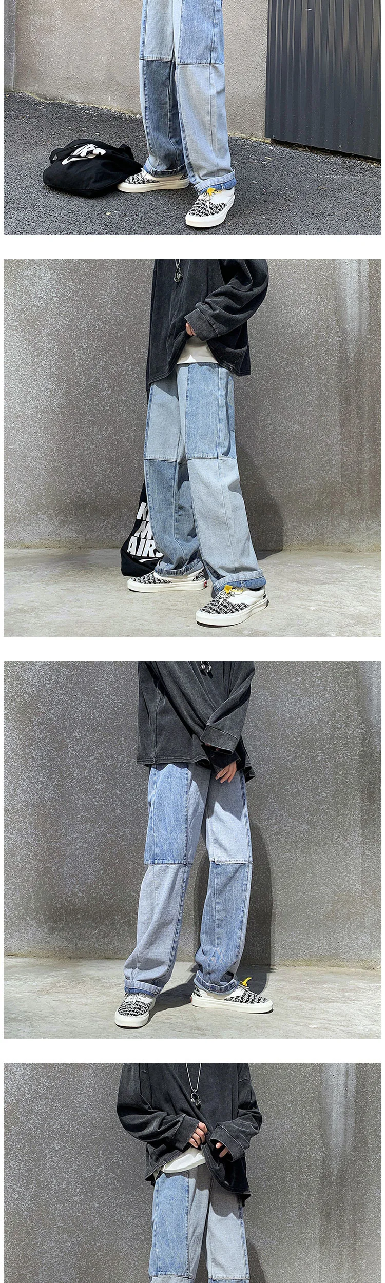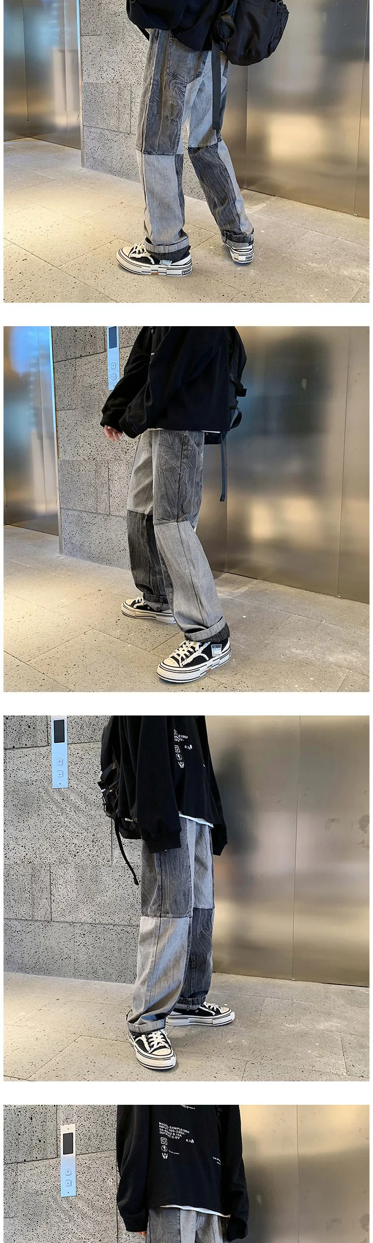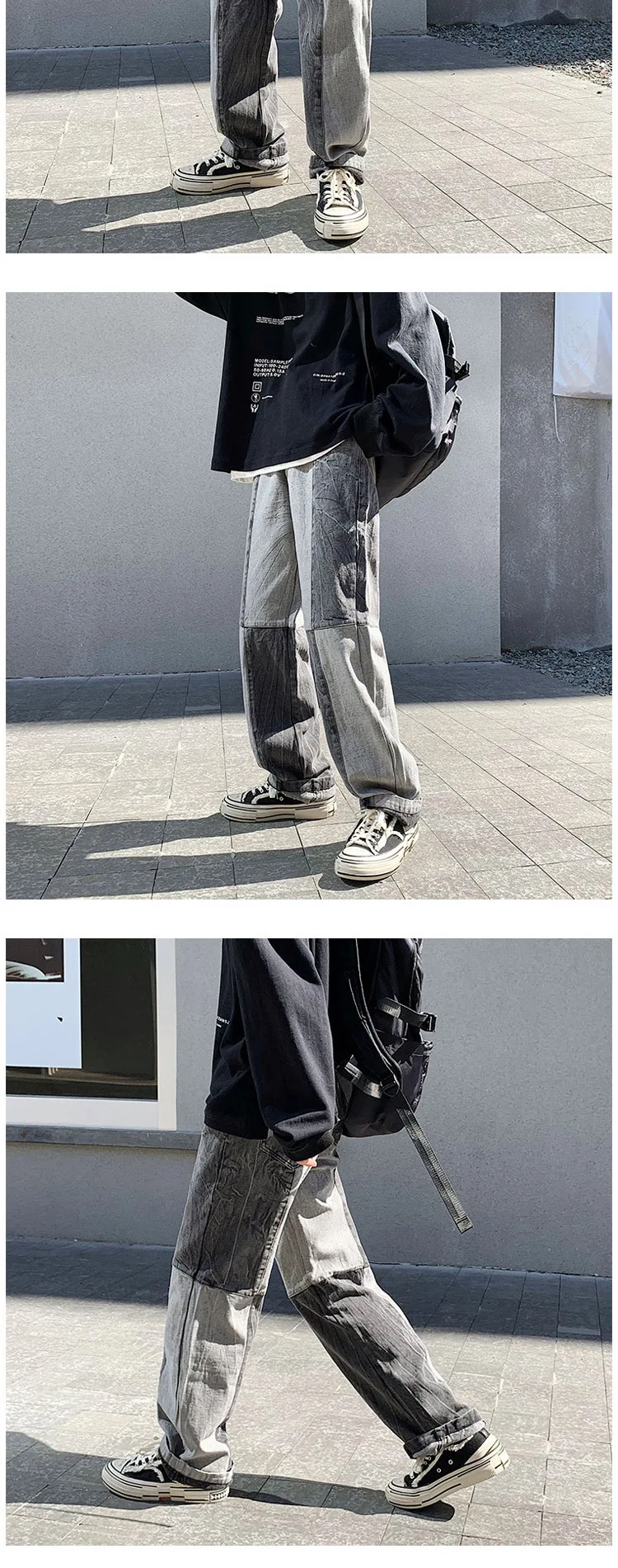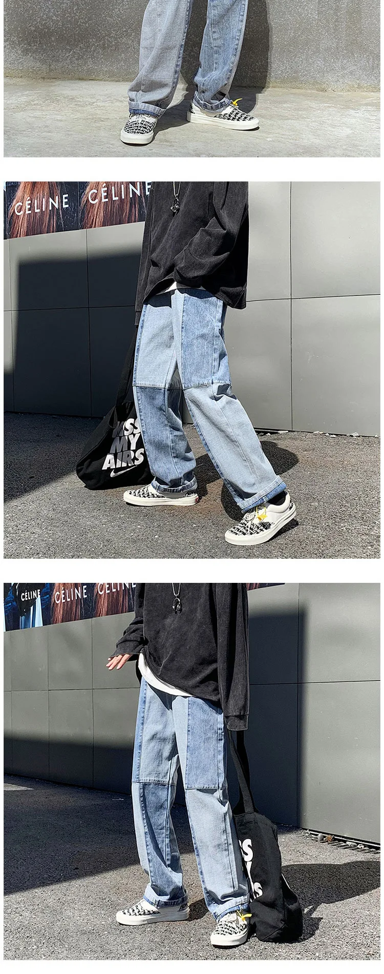 Fashion Men Relaxed Fit Jeans Straight Loose Patchwork Wide Legs Comfortable Male Street Trend Hip Hop Baggy Denim Pants