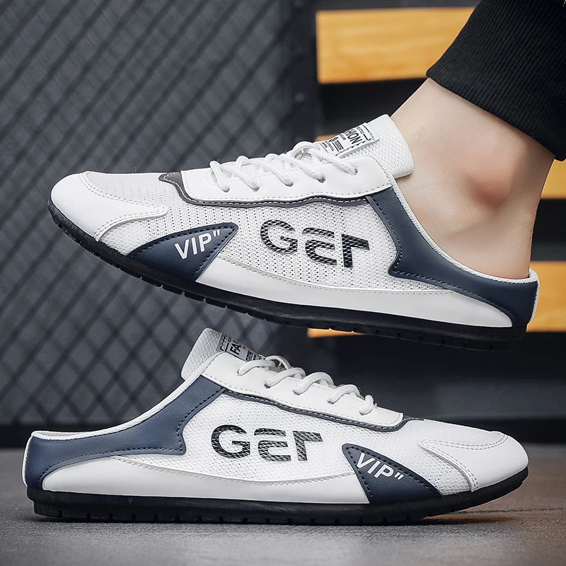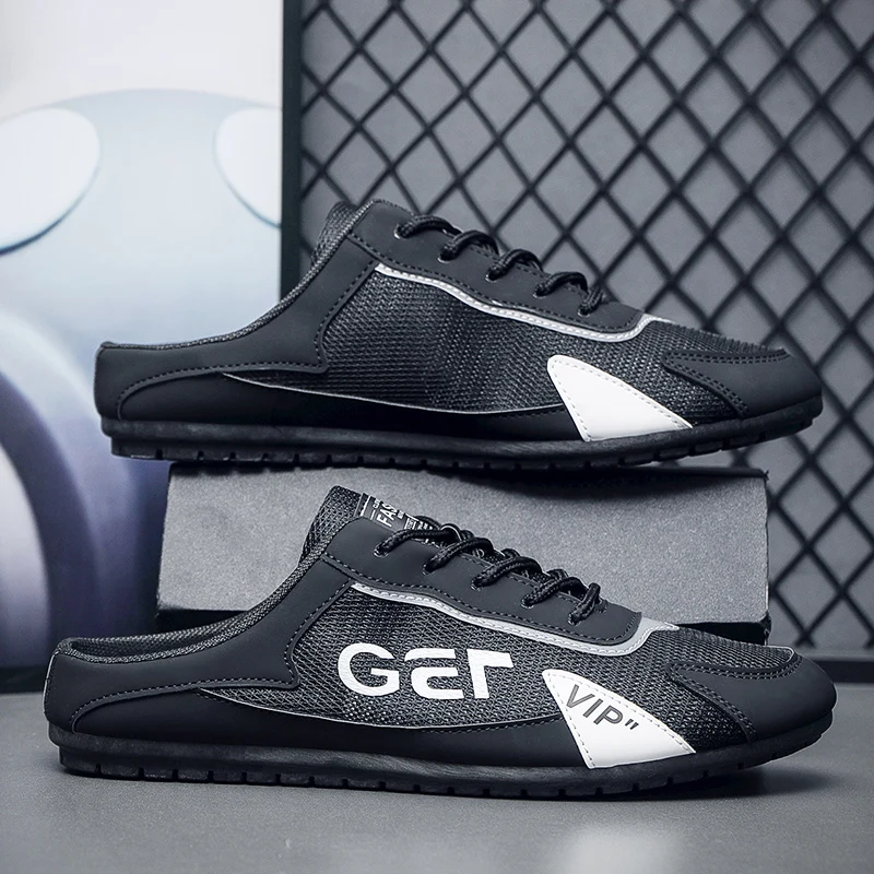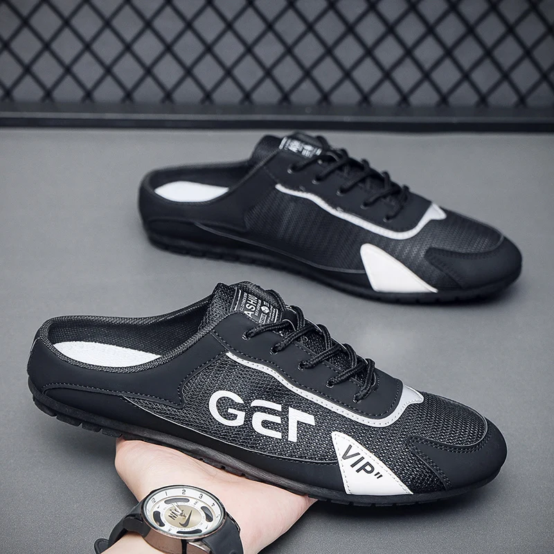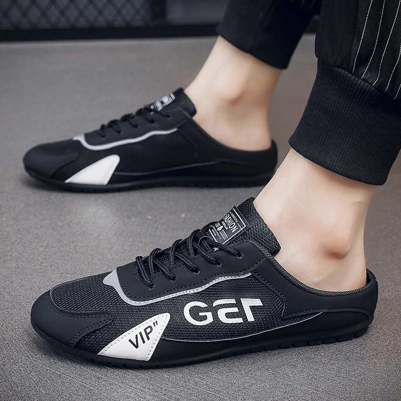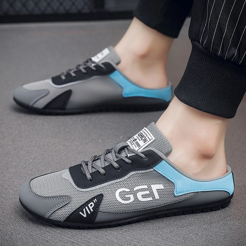 Fashion Summer Non-slip Men Vulcanize Shoes Half Slippers Mesh Cloth Shoes For Man Driving Shoe Male Comfortable Flat Footwear