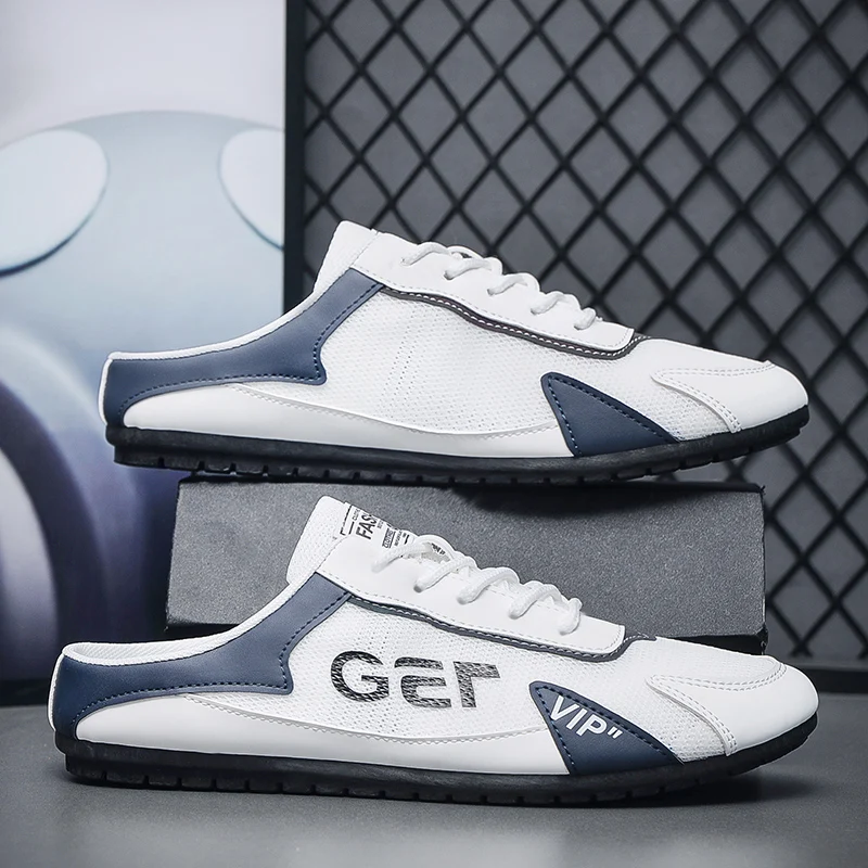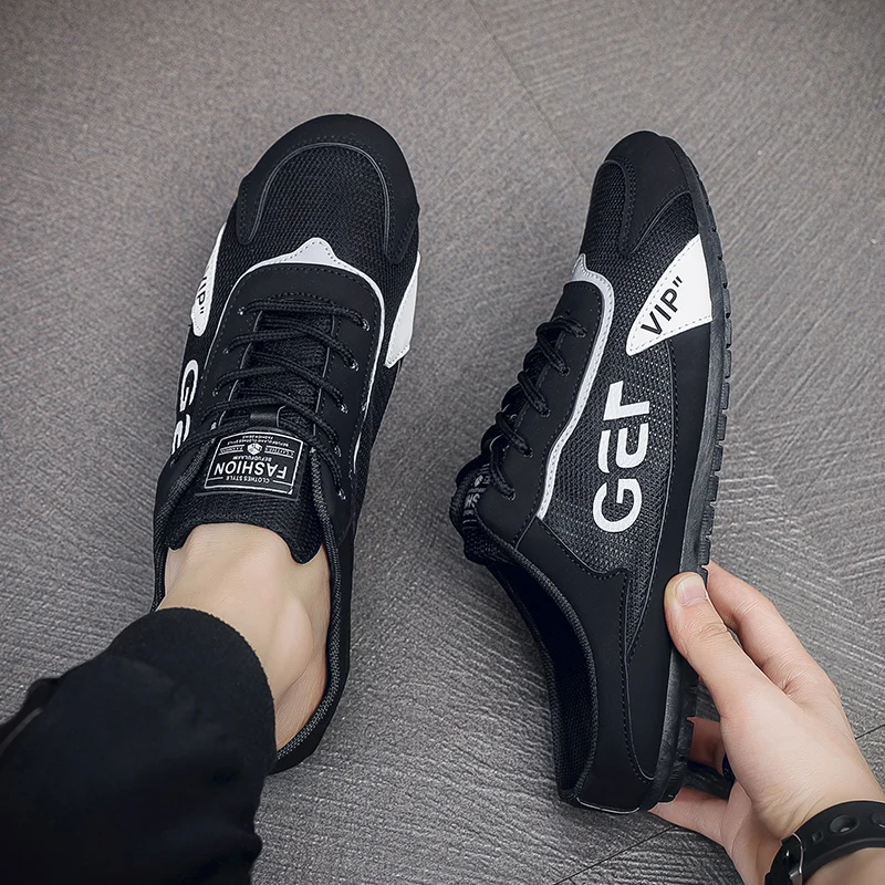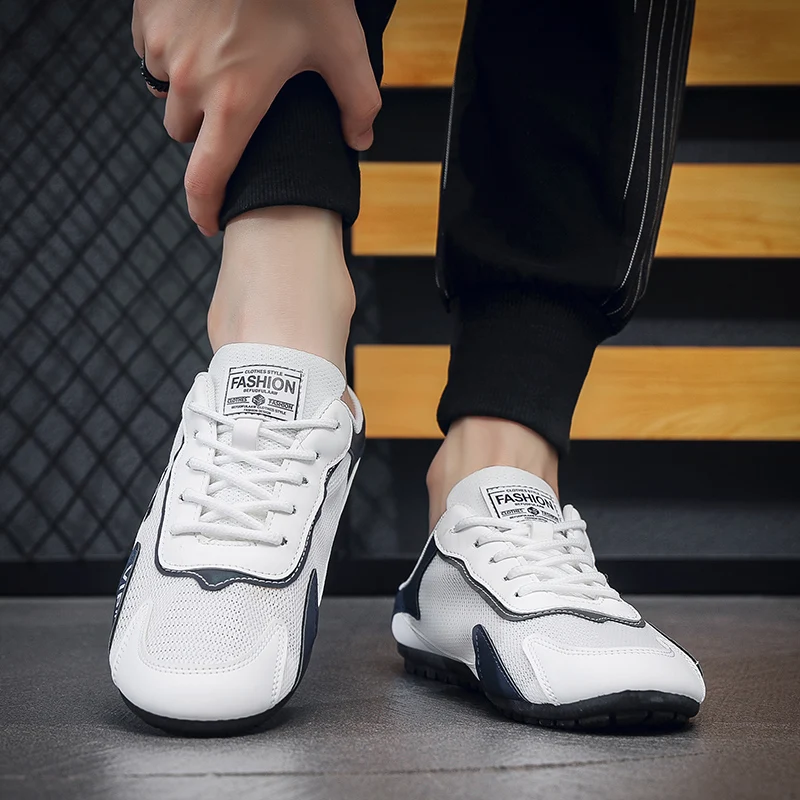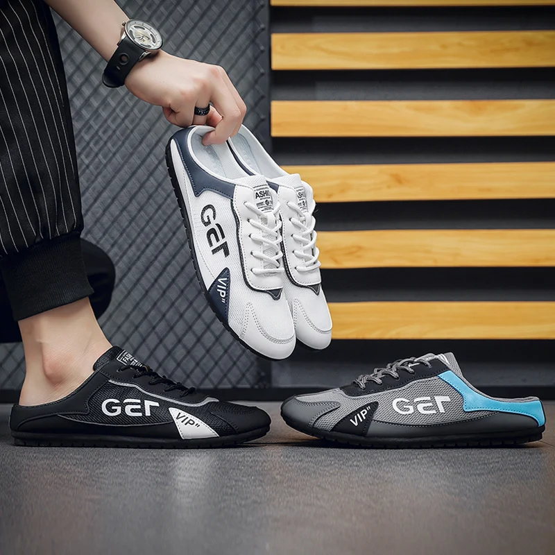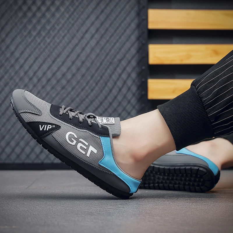 Fashion Summer Non-slip Men Vulcanize Shoes Half Slippers Mesh Cloth Shoes For Man Driving Shoe Male Comfortable Flat Footwear