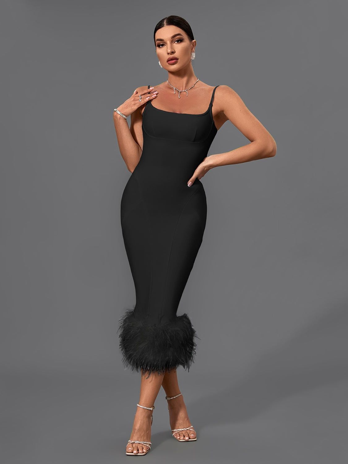 Feather Bandage Dress Women White Bodycon Dress Evening Party Elegant Sexy Midi Birthday Club Outfits 2022 Summer New Fashion