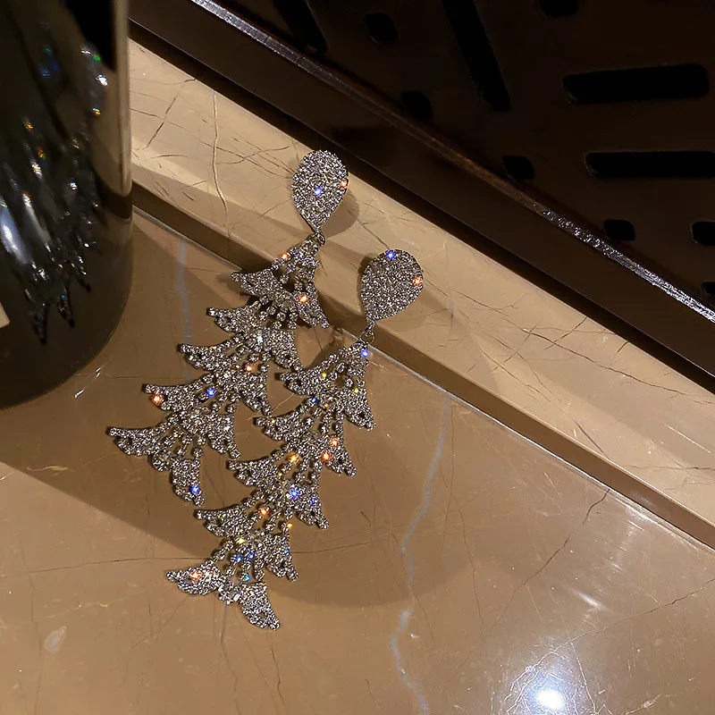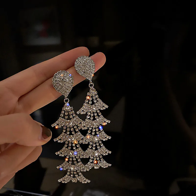 FYUAN Geometric Water Drop Crystal Earrings for Women Bijoux Long Tassel Rhinestone Dangle Earrings Statement Jewelry