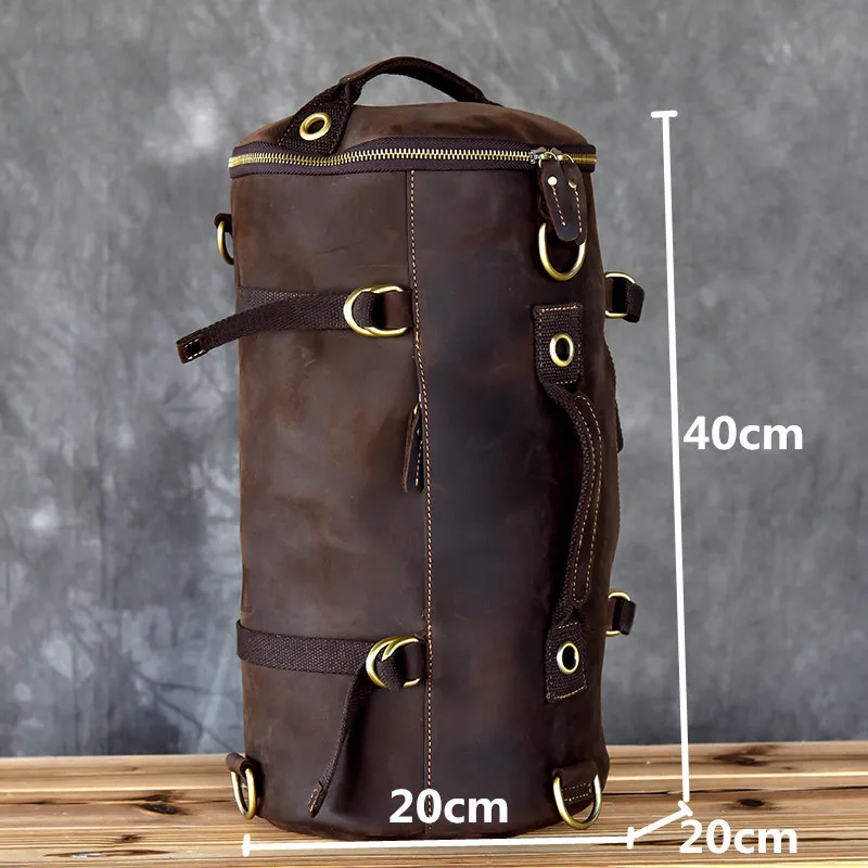 Genuine Leather Backpack Men Handbag Shoulder Crossbody Bag Male Small Travel Back Pack Bucket Bags Crazy Horse Leather