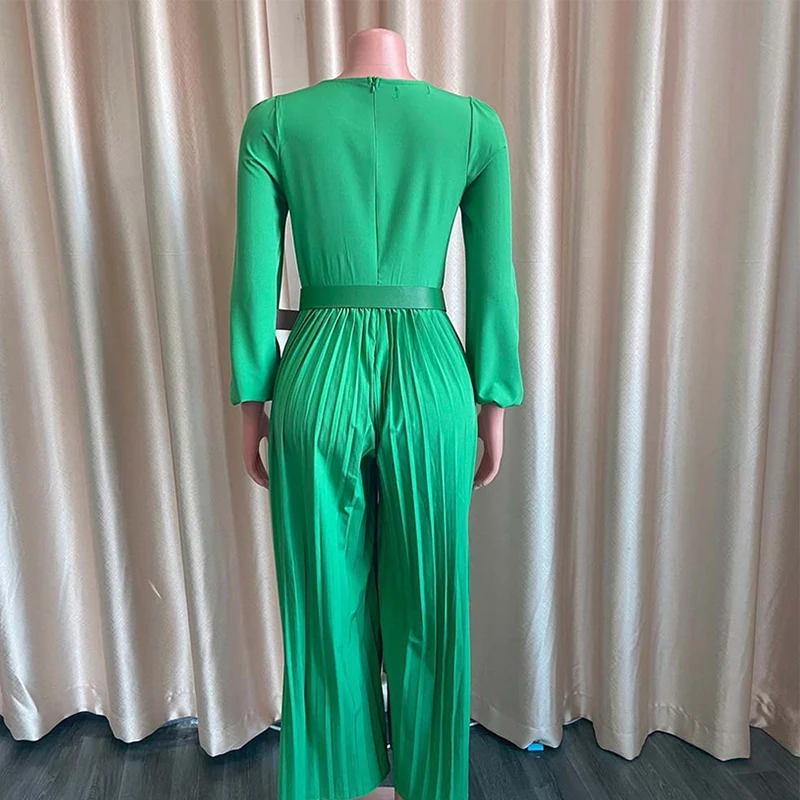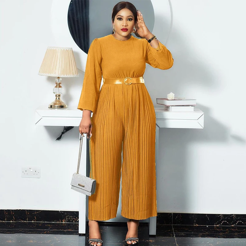 Junpsuits for Women Casual Wide Leg Pant Long Sleeve Office Jumpsuit with Belt Elegance Ladies Chiffon Jumpsuit Wholesale Items