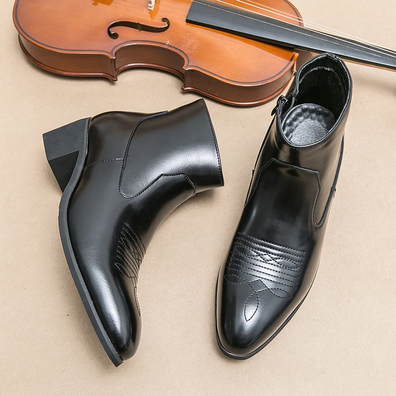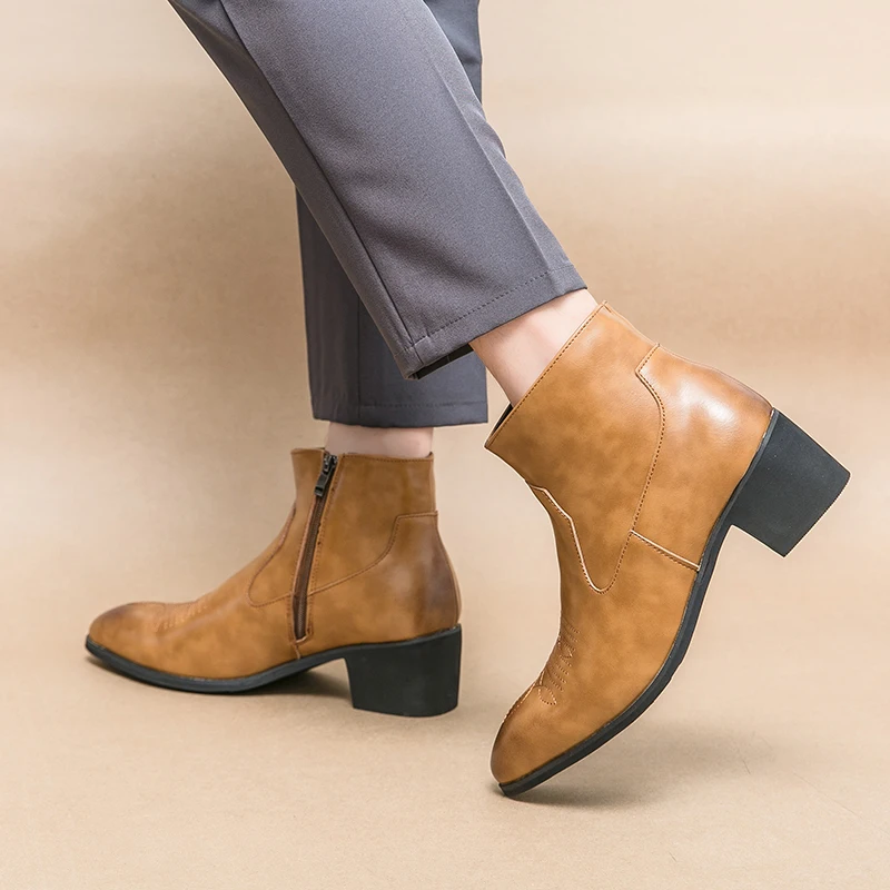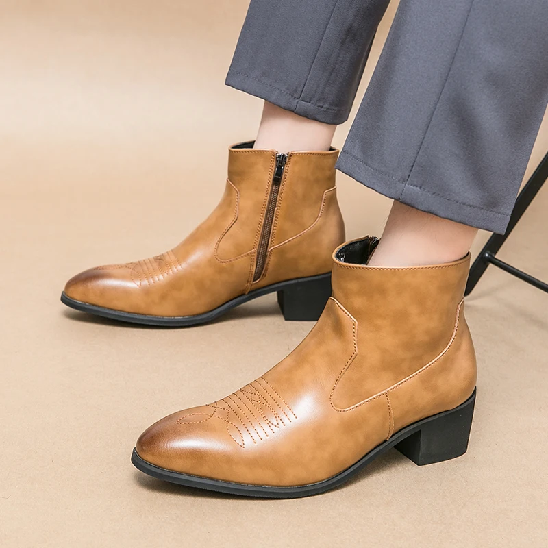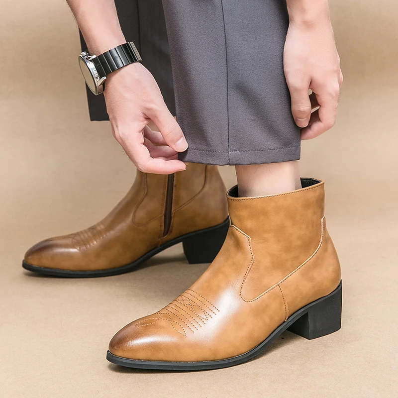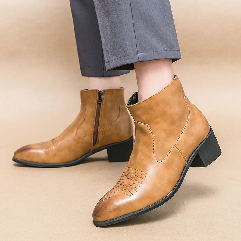Men's Chelsea Boots Luxury Western Style Men Ankle Boots Slip-On Fashion Horse Boots Retro Winter Cowboy Boots Dress Boots ZIP