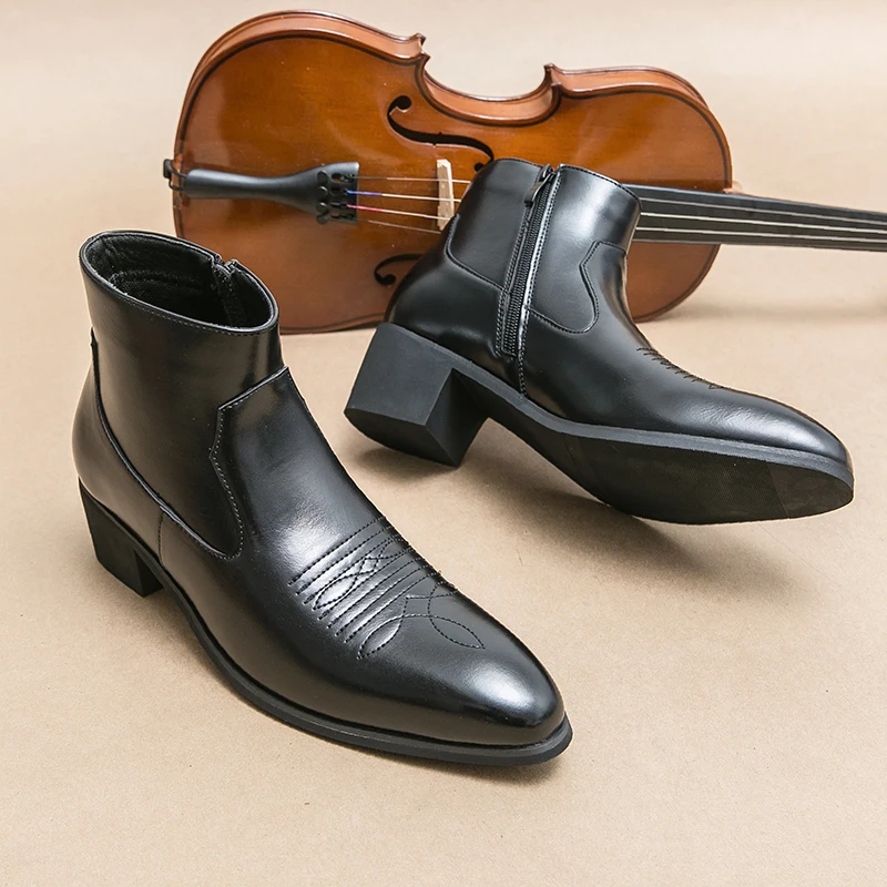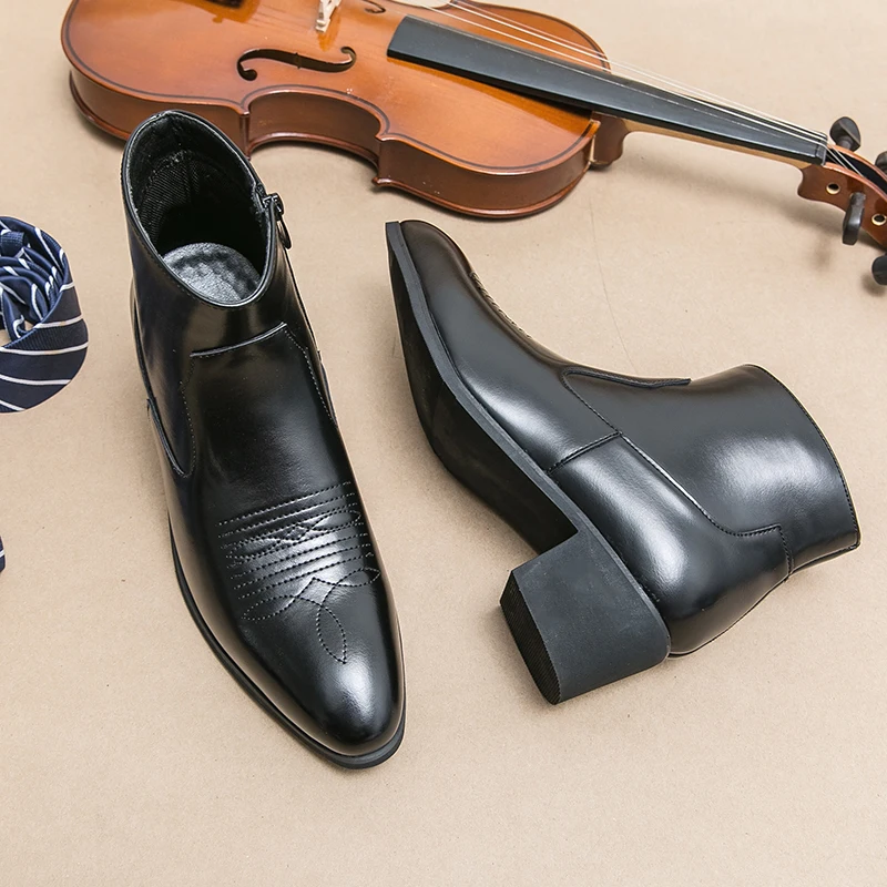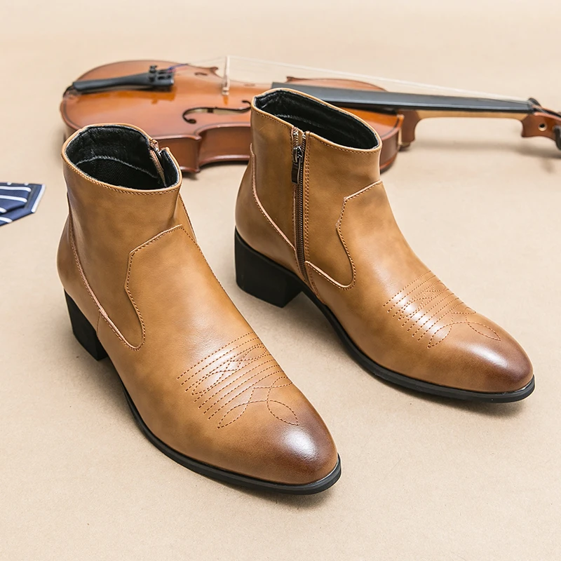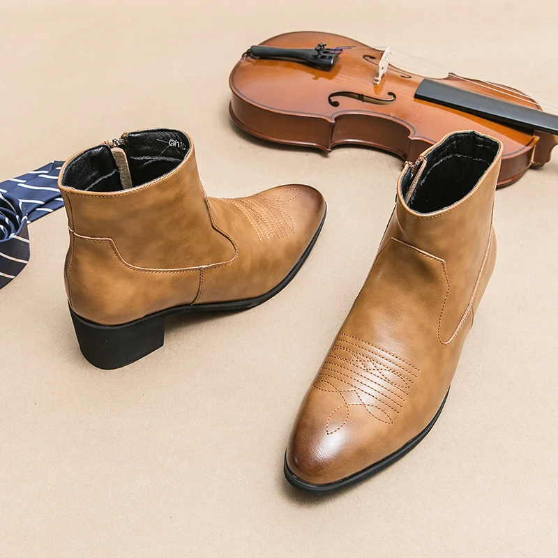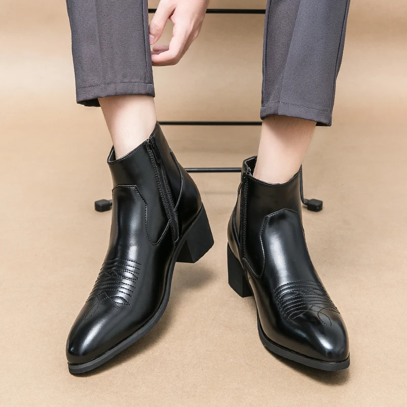 Men's Chelsea Boots Luxury Western Style Men Ankle Boots Slip-On Fashion Horse Boots Retro Winter Cowboy Boots Dress Boots ZIP