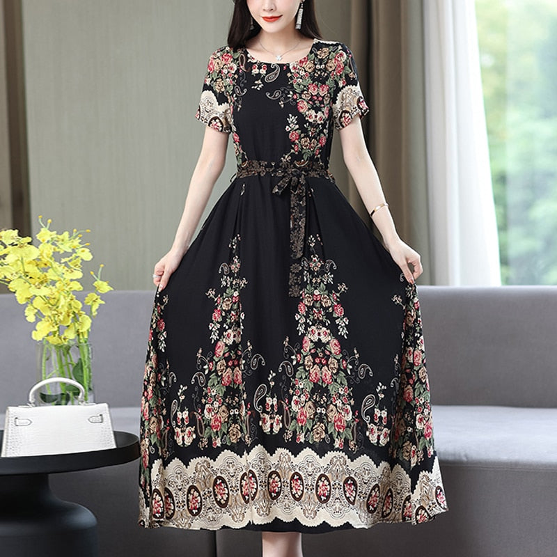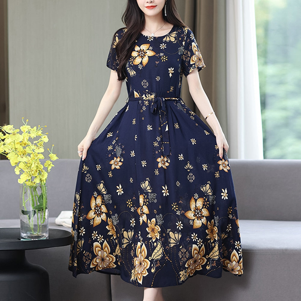 New Fashion 2023 Summer Long Party Dresses For Women Short Sleeve O-Neck Elegant Summer Dress Woman Clothing