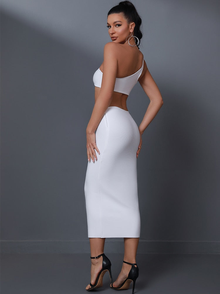White Bandage Dress Women Midi Party Dress Bodycon Elegant Cut Out Sexy Backless Evening Birthday Club Outfits Summer 2023