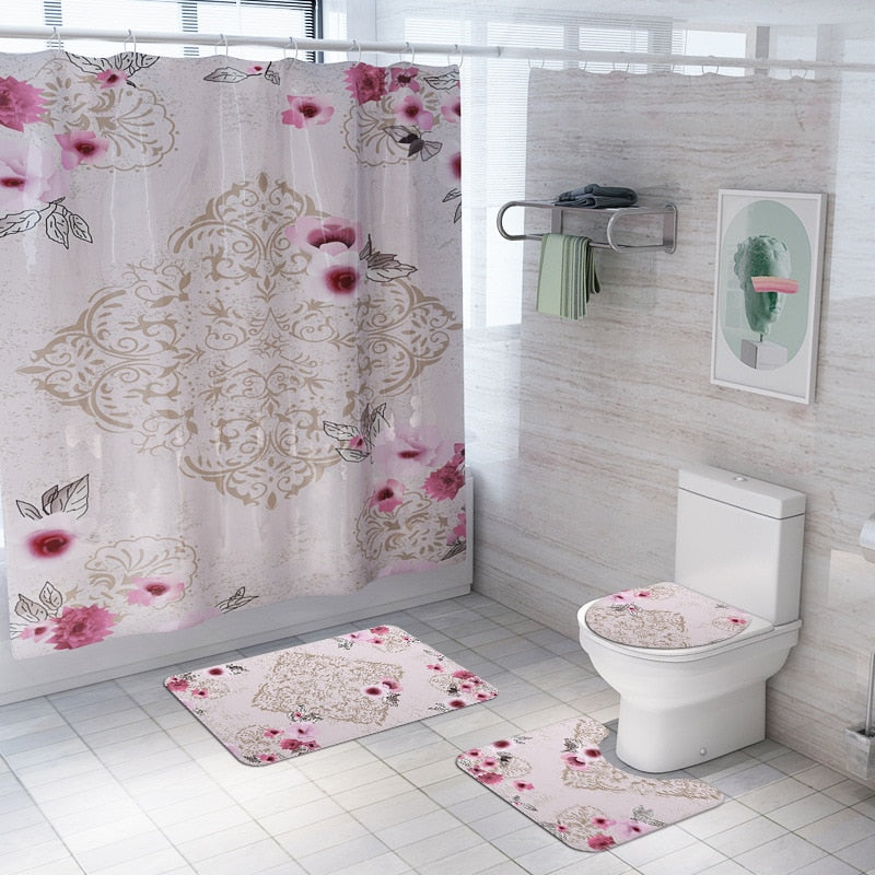 Bathroom Carpet Rug Bath Mat and Shower Curtain Set Bathroom Toilet Rug Bath Mats Home Decor Shower Floor Foot Rug Bathroom Mats
