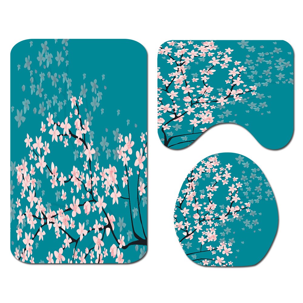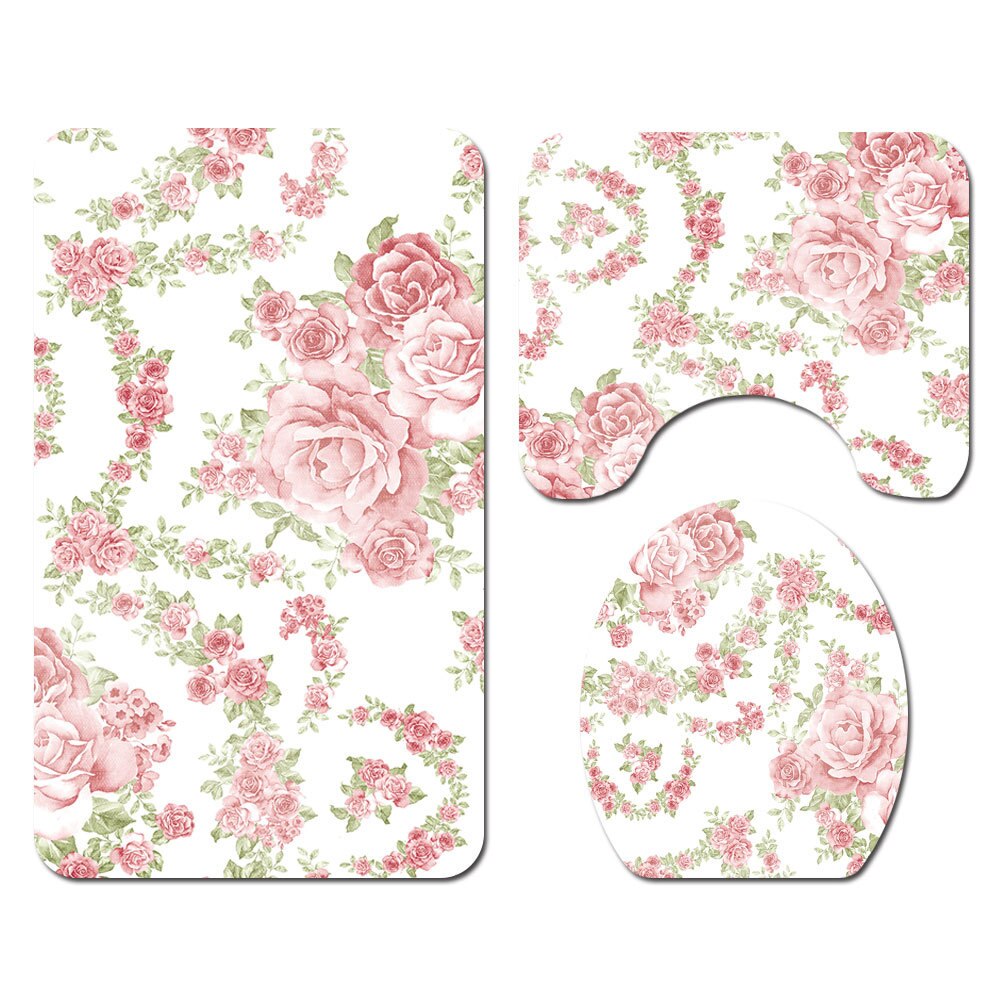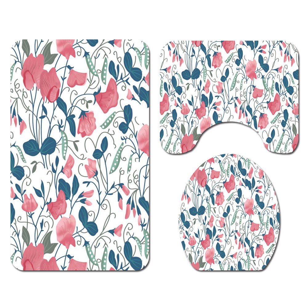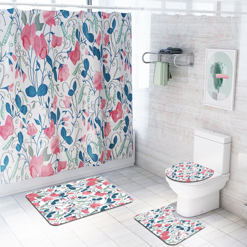 Floral Bath Mat and Shower Curtain Set Shower Curtain with Hooks Bath Rugs Anti Skid Bathroom Carpet Toilet Foot Pad Bath Mat
