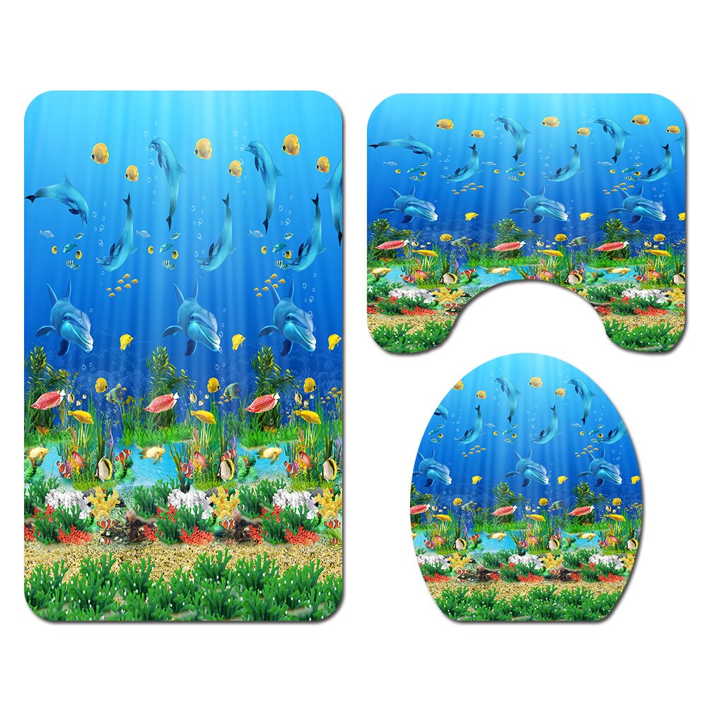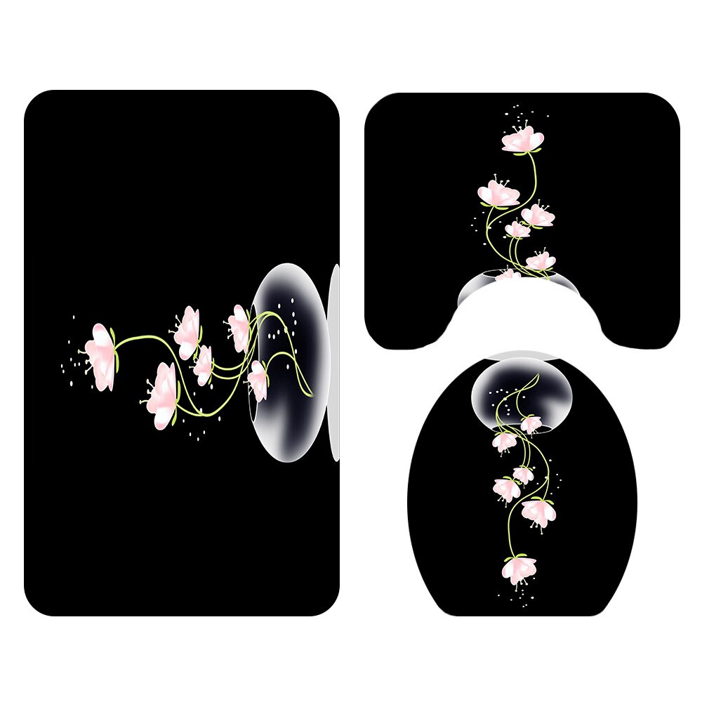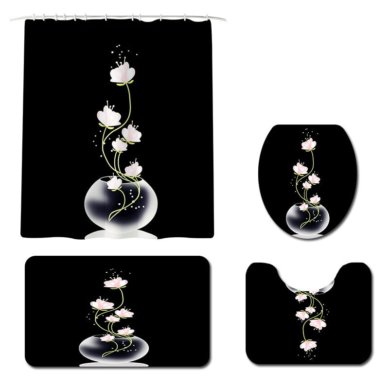 Non Slip Toilet Seat Cover Bath Mat Polyester Waterproof Shower Curtain Set Bathroom Carpet Home Decor Bathroom Foot Mat