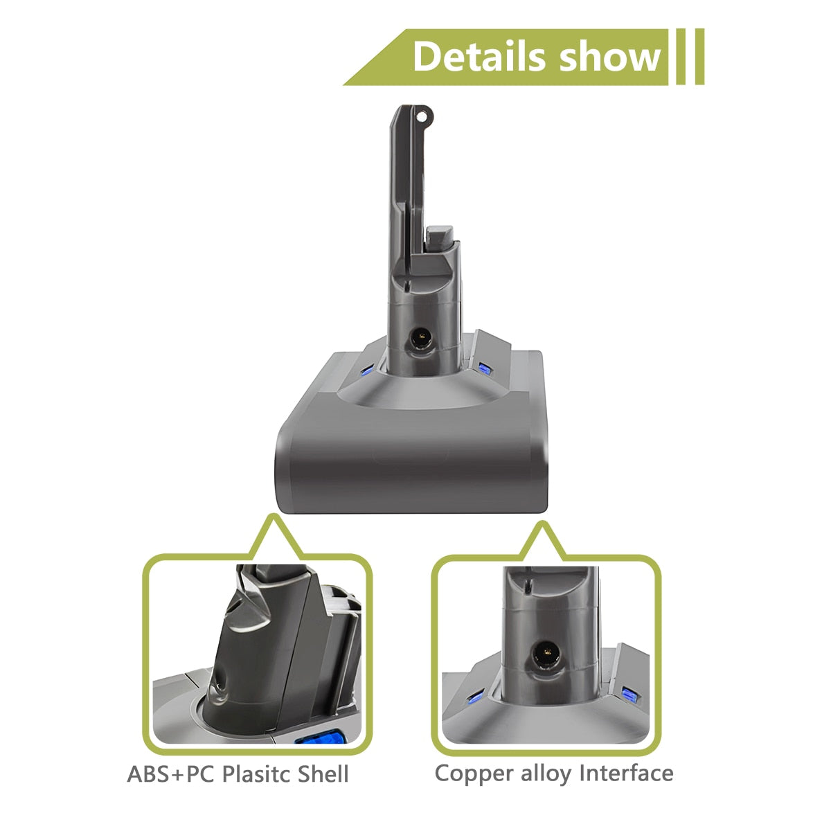 Compatible with: For Dyson 21.6v Batteries 6000mAh