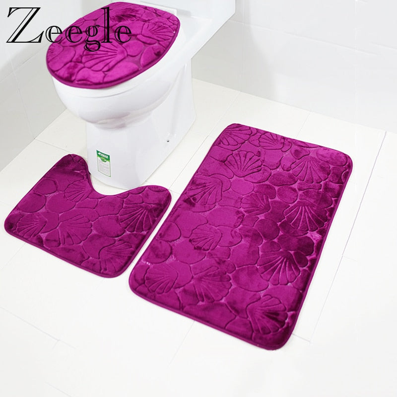 Zeegle Bathroom Bath Mat Set Toilet Rugs Flannel Anti Slip Shower Carpets Set Home Toilet Lid Cover Shower Room Rug Floor Mats